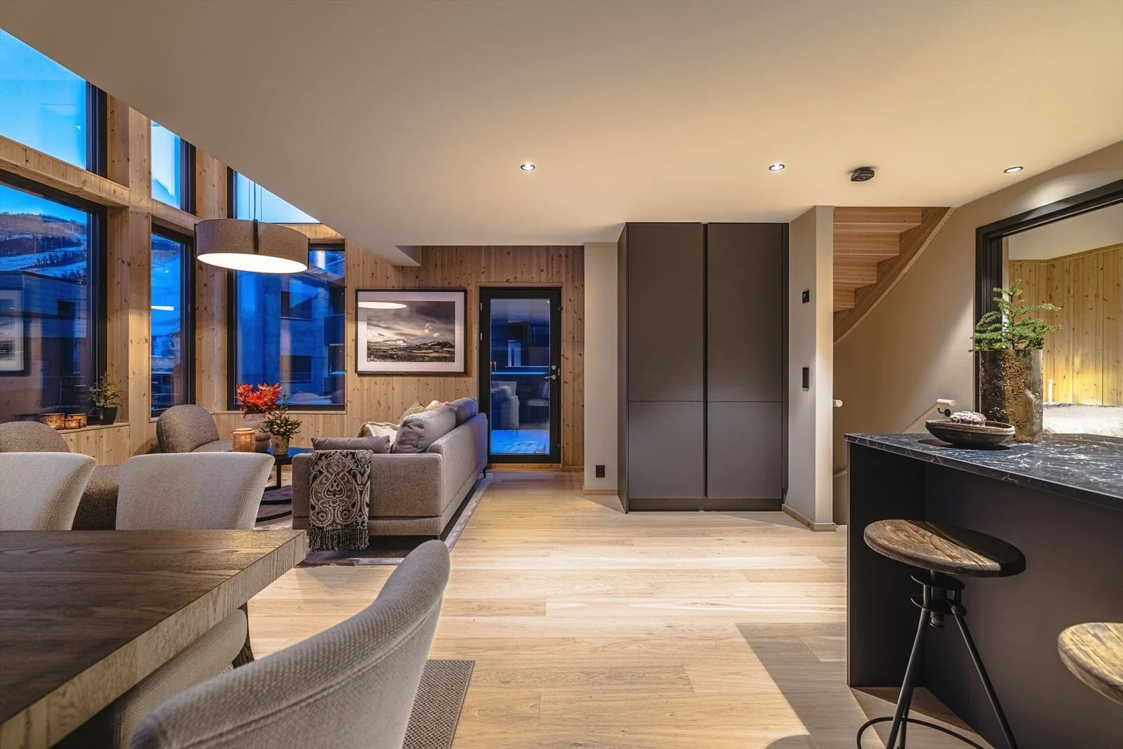 Chaleten er perfekt for den aktive storfamilien med rikelig plass til ski og annet utstyr, parkering i garasje med lader, samt carport.