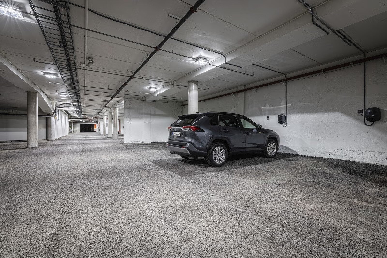 Leiligheten disponerer en parkeringsplass m/el-bil lader og heisadkomst til etasjene.