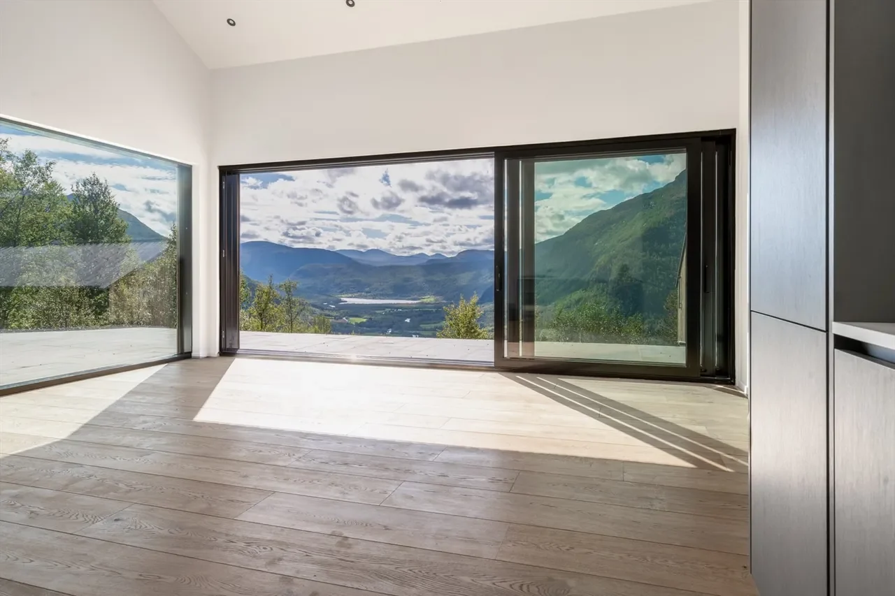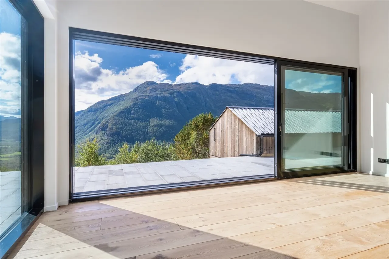 Eiendommen byr på en magisk utsikt og hytta er stor med god plass for en storfamilie.