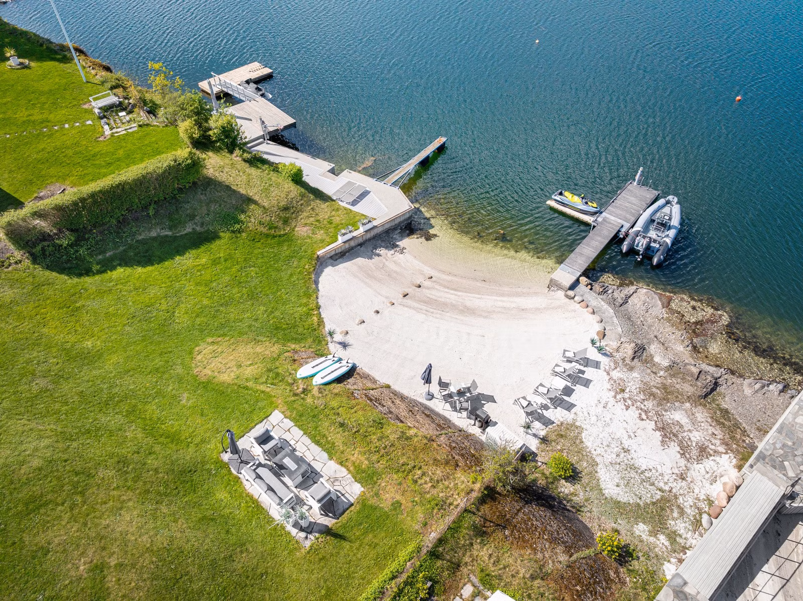 Eiendommen er ideelt plassert for både familieliv, båtliv og optimale solforhold. Sandstrand, egen dypvannsbrygge samt båtplass på felles brygge. Frodige og åpne omgivelser uten mange trær forsterker stemningen.
