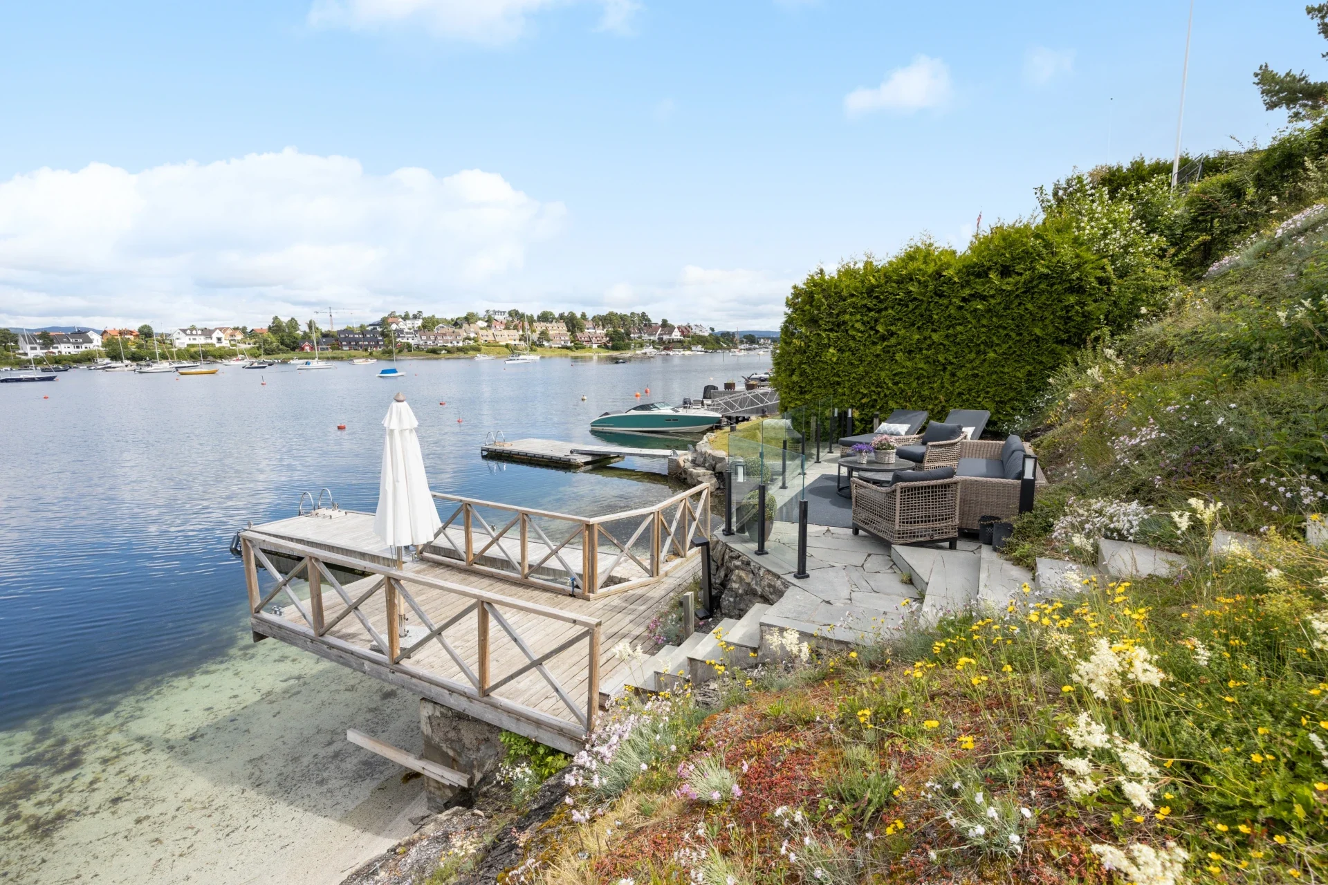 En nydelig strandeiendom med fantastisk sjøutsikt i grønne omgivelser. Eiendommen ligger med en svært etterspurt beliggenhet i et populært og veletablert villaområde på Snarøya. En sjelden mulighet til å kapre seg en vestvendt, nylig renovert, funksjonell bolig der man har sjøen tett på gjennom store, åpne vindusflater i alle etasjer – en strandeiendom som kan nytes året rundt.