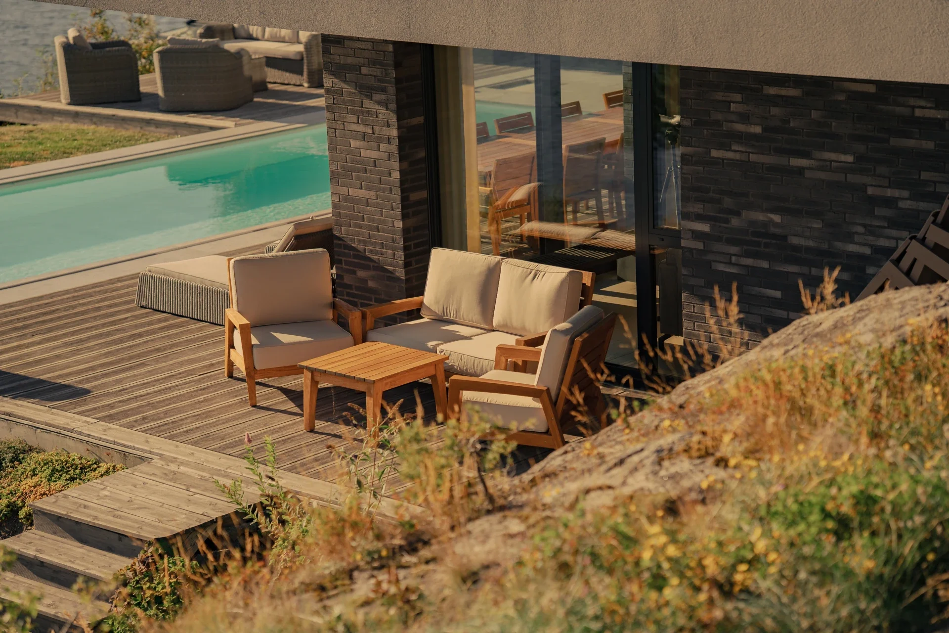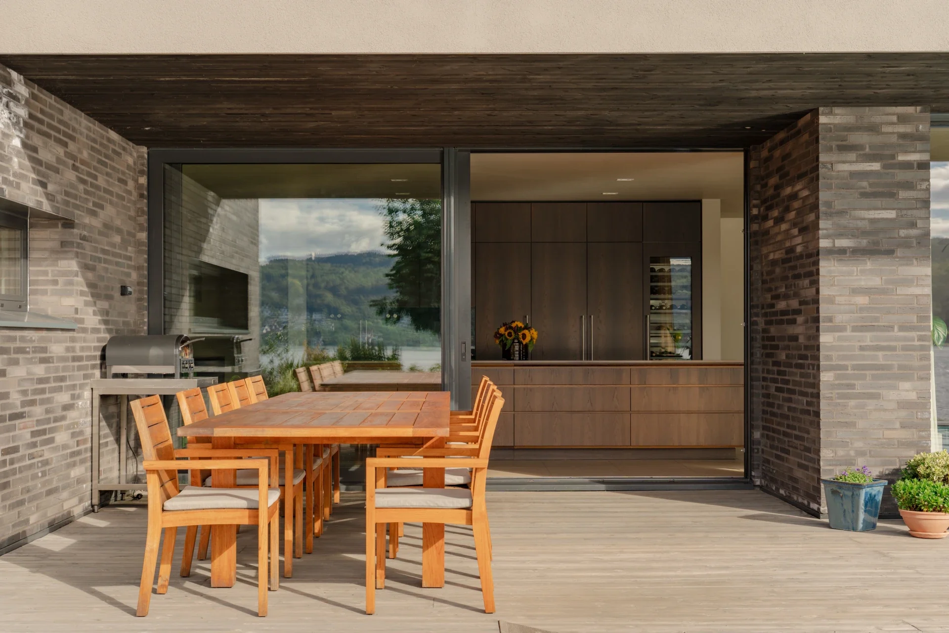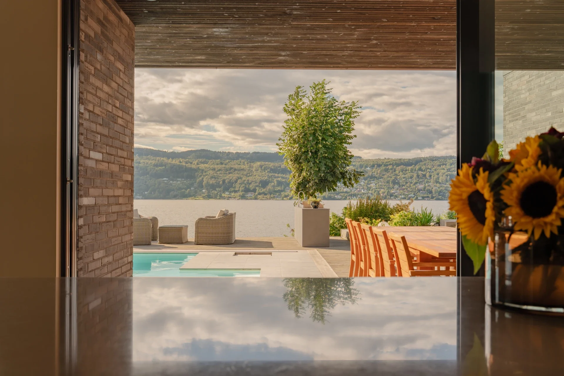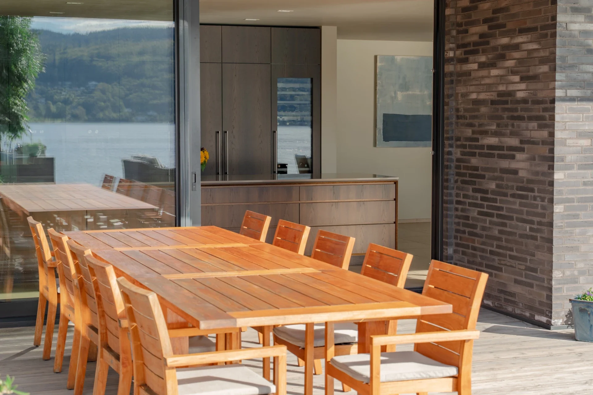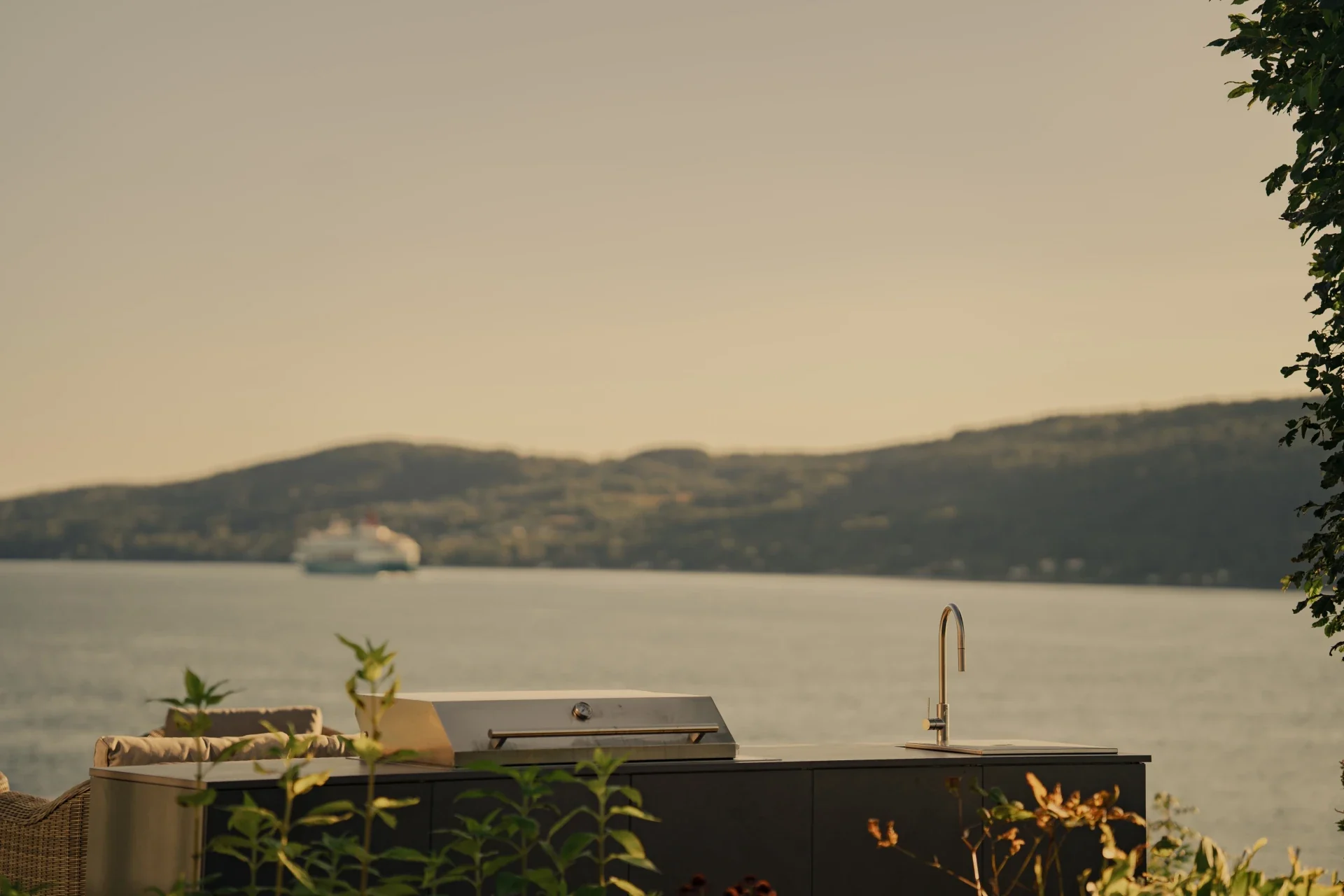 Store, solrike terrasser og et gjennomført utekjøkken fra Ballingsløv i Dekton