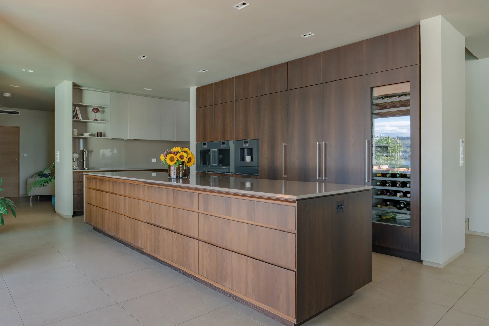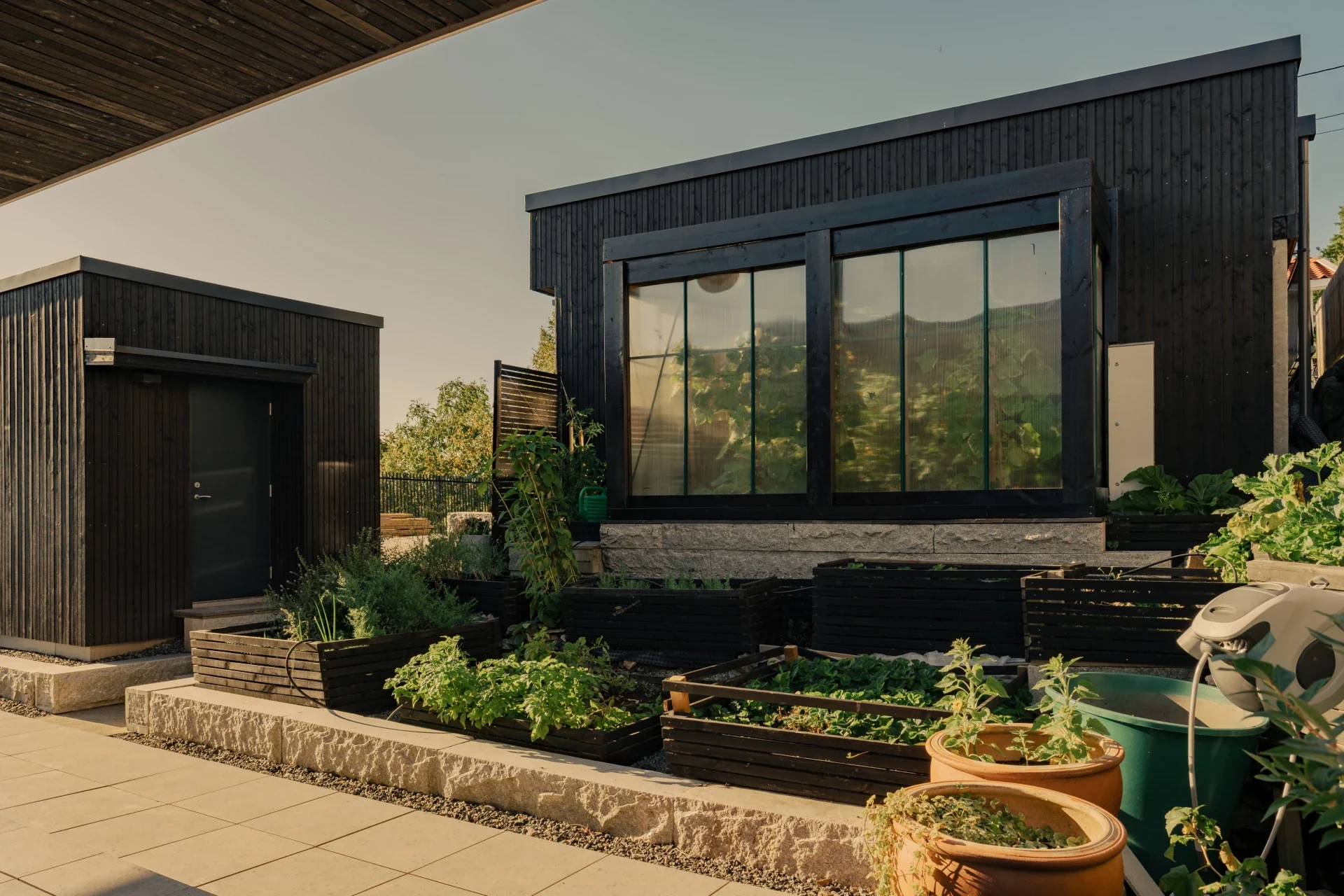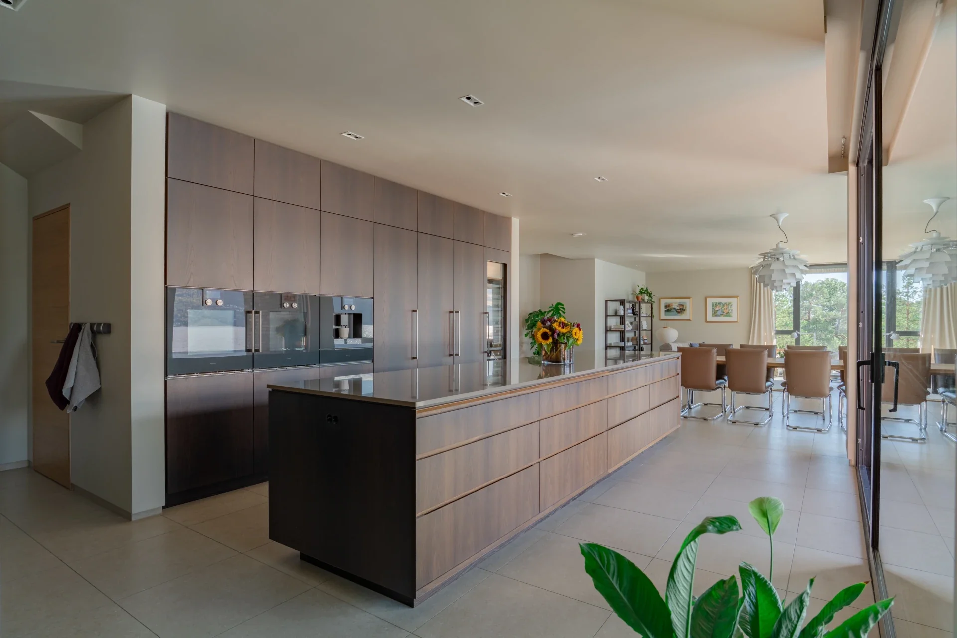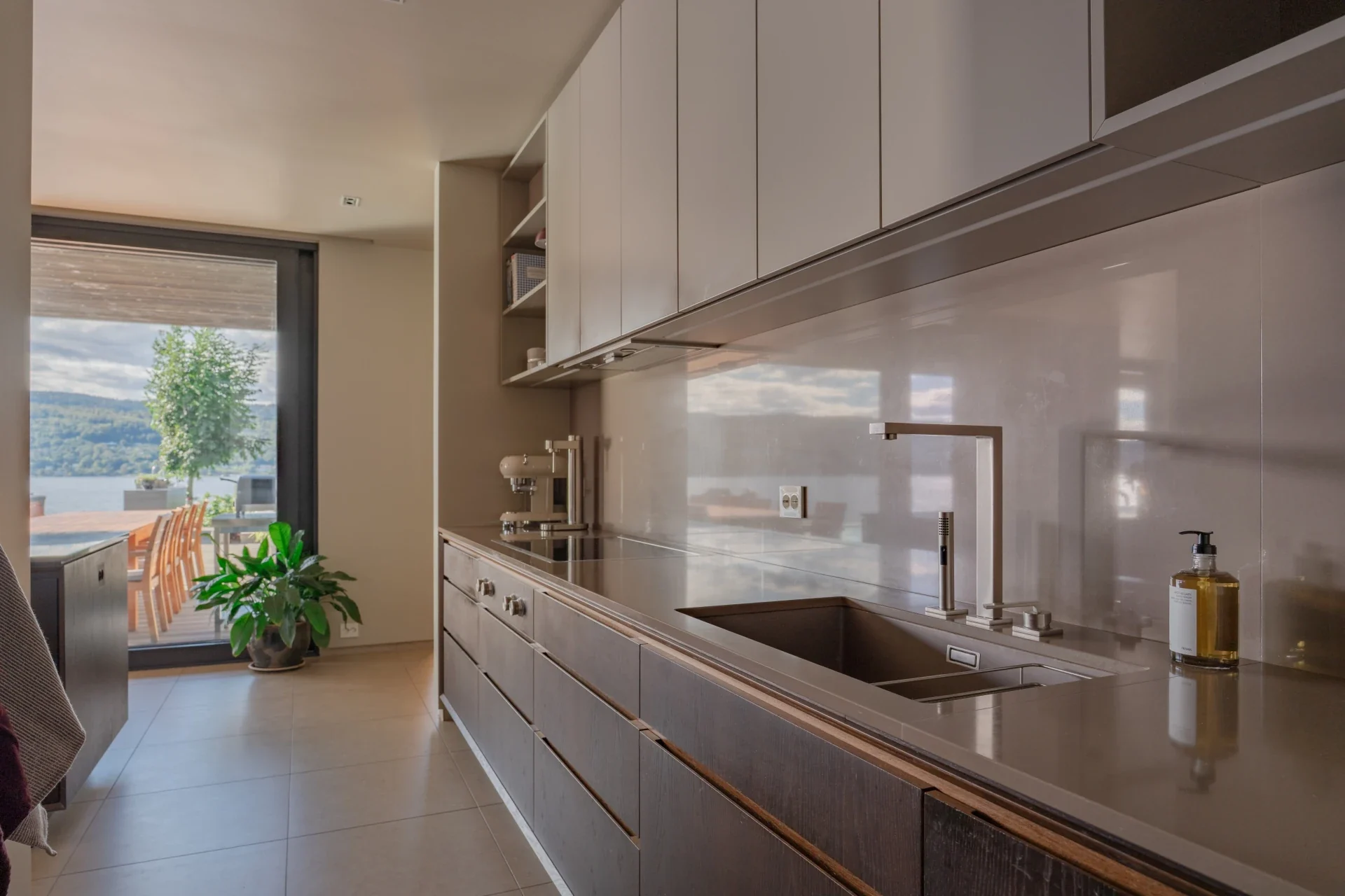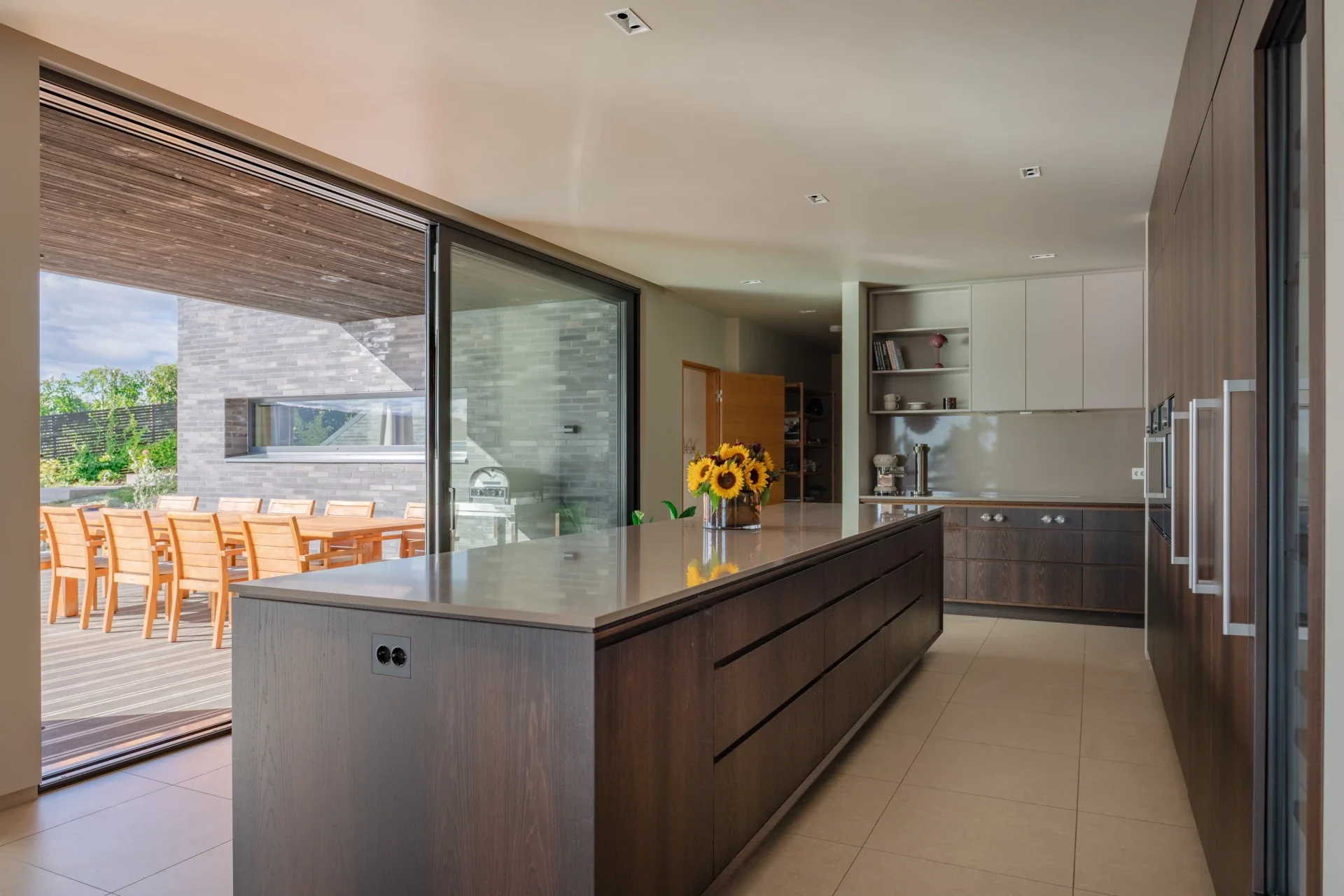 Store, solrike terrasser og et gjennomført utekjøkken fra Ballingsløv i Dekton