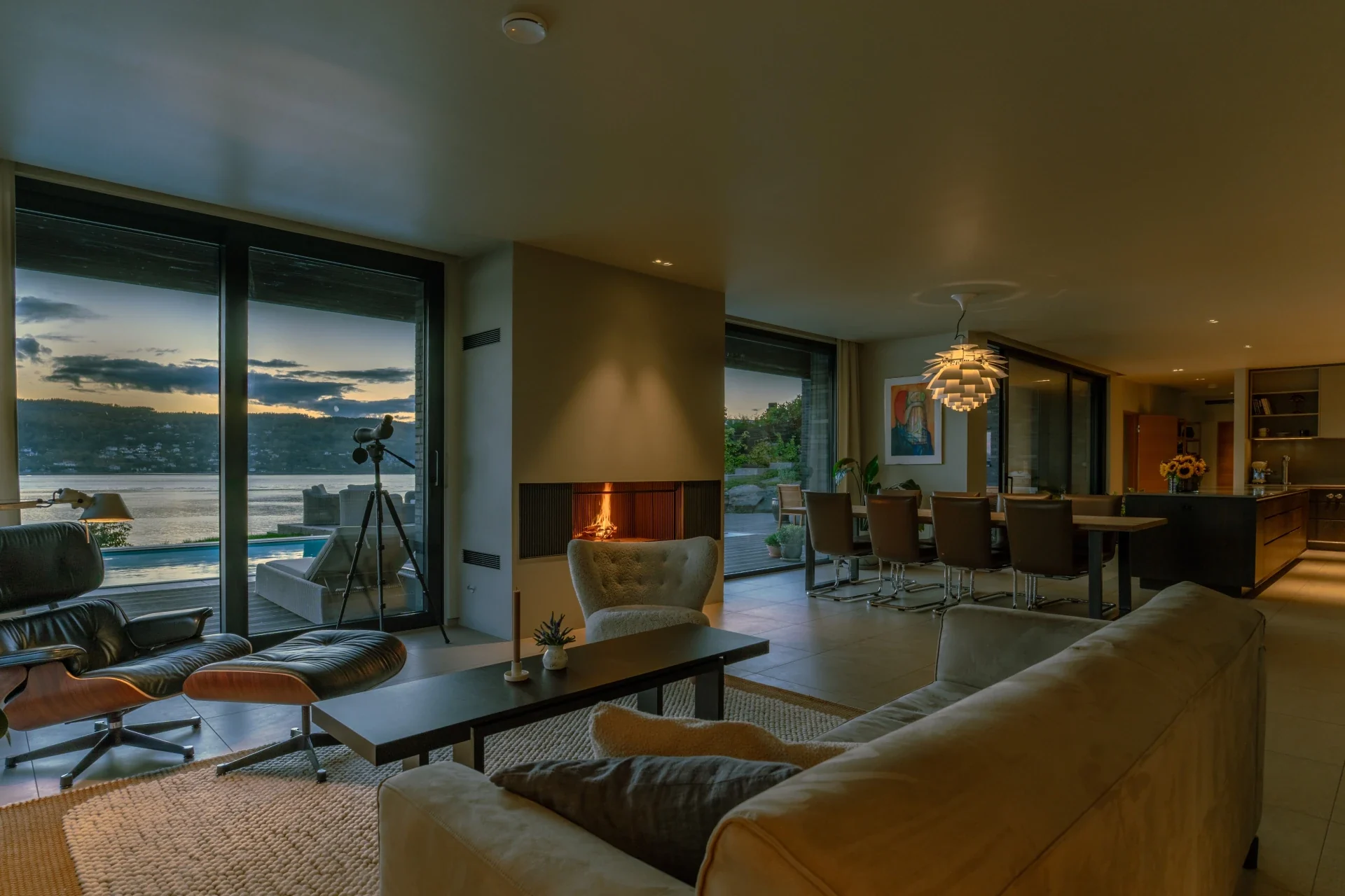 Denne eiendommen kombinerer moderne arkitektur med tidløse kvaliteter, og byr på en sjelden mulighet til å bo helt i sjøkanten. Med ca.100 meter privat strandlinje (ikke kontrollmålt), egen badebrygge på 30 m² og kort gangavstand til Drøbak sentrum, er dette et hjem som forener privatliv, komfort og nærhet til byens fasiliteter.