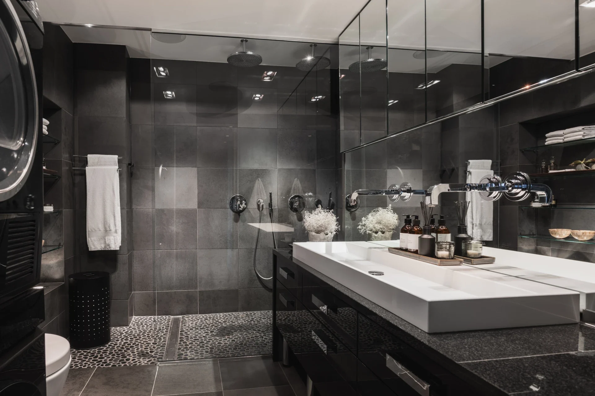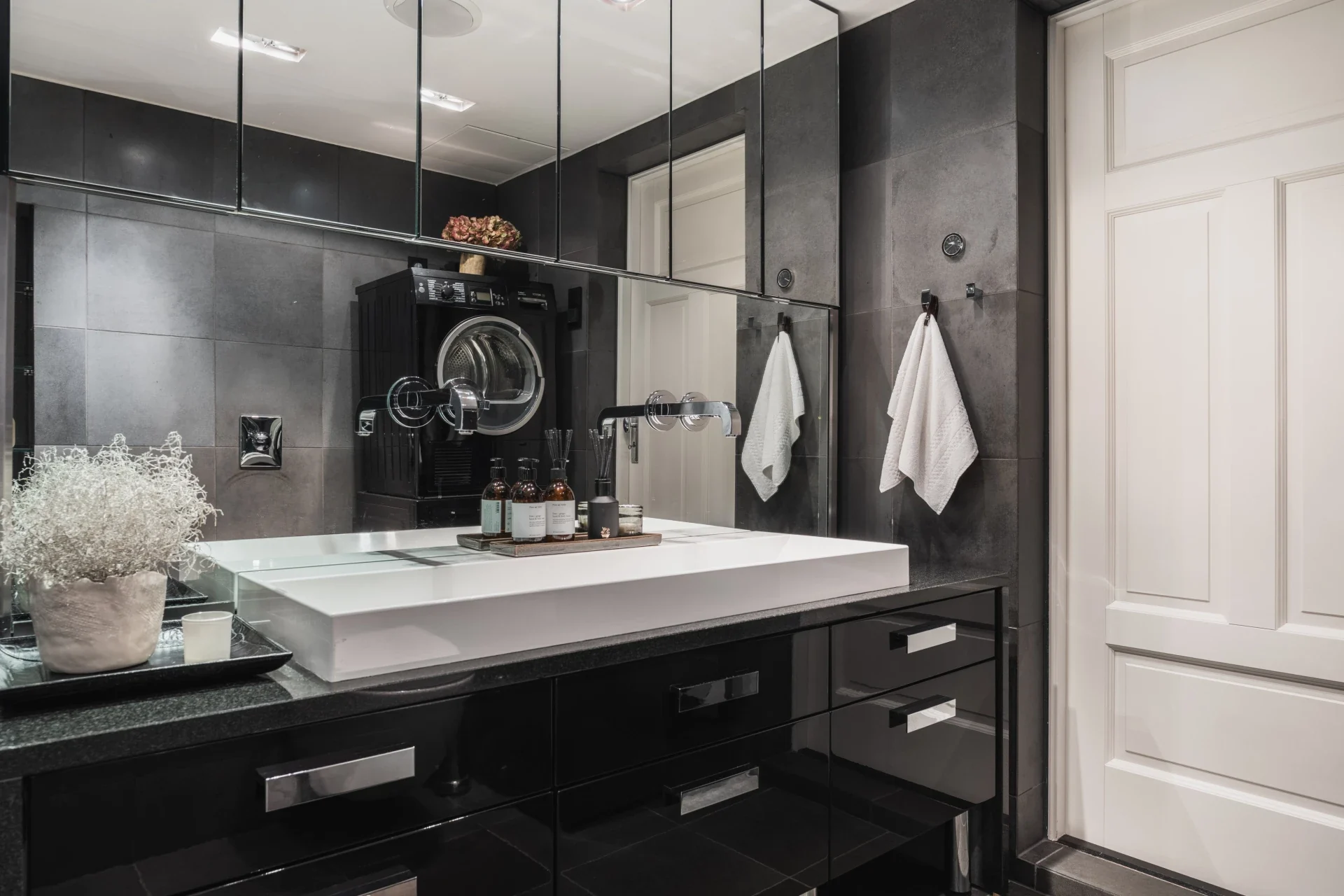 Boligen fremstår som svært gjennomført med kvalitetsmaterialer i alle rom. Planløsningen er både funksjonell og godt gjennomtenkt, med god flyt mellom både sosiale og private soner. Skreddersydde løsninger, tidløse detaljer og eksklusive materialvalg i en diskré utførelse preger helheten. Leiligheten har flotte lysflater fra to sider, fantastisk takhøyde og utgang til 2 balkonger på hver side av leiligheten.