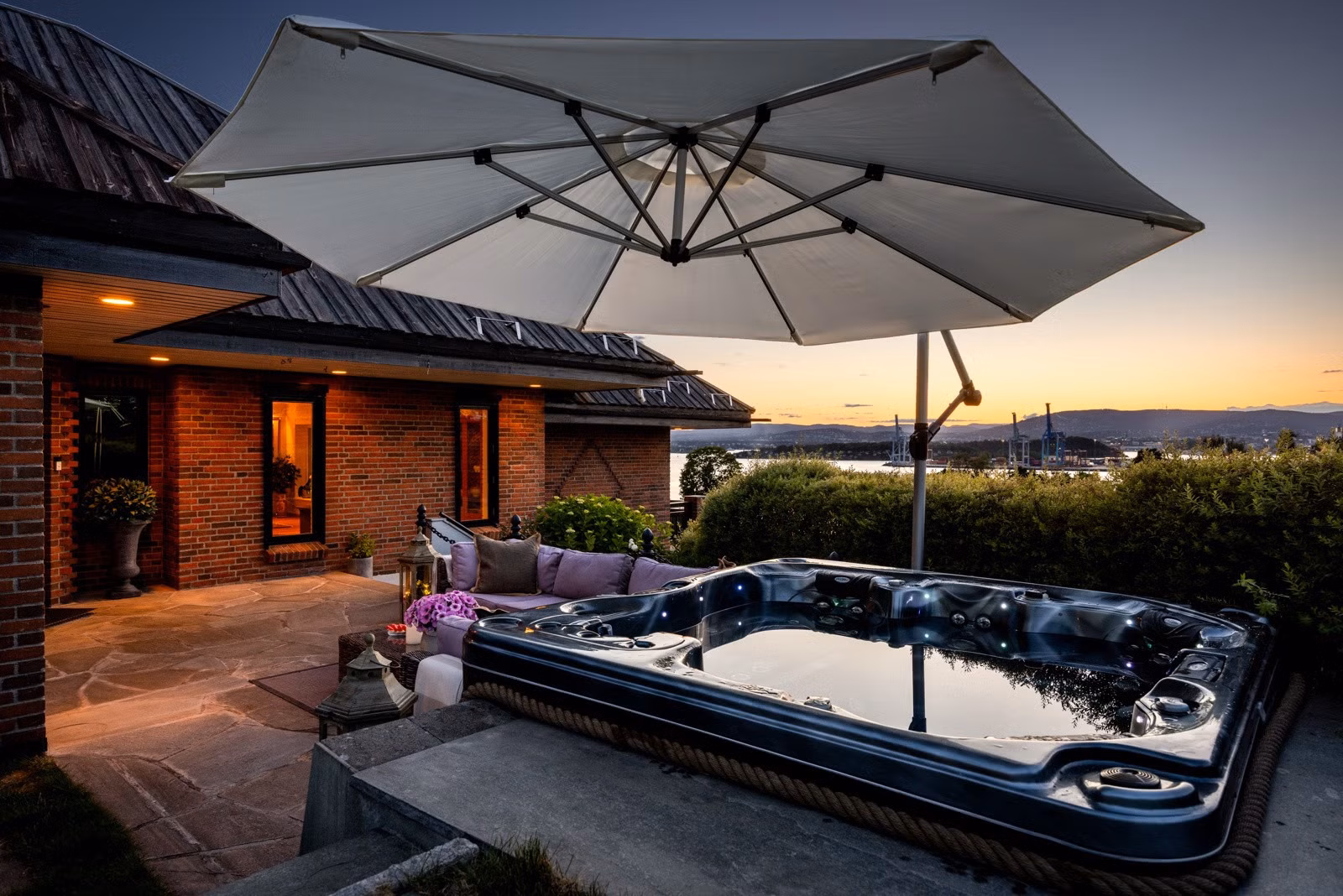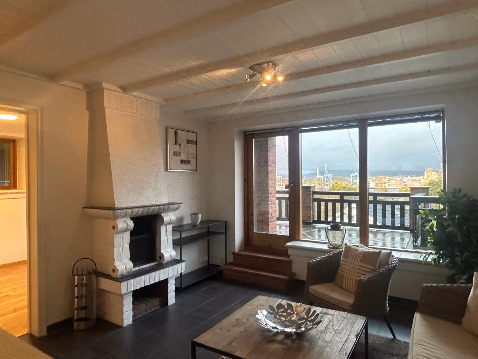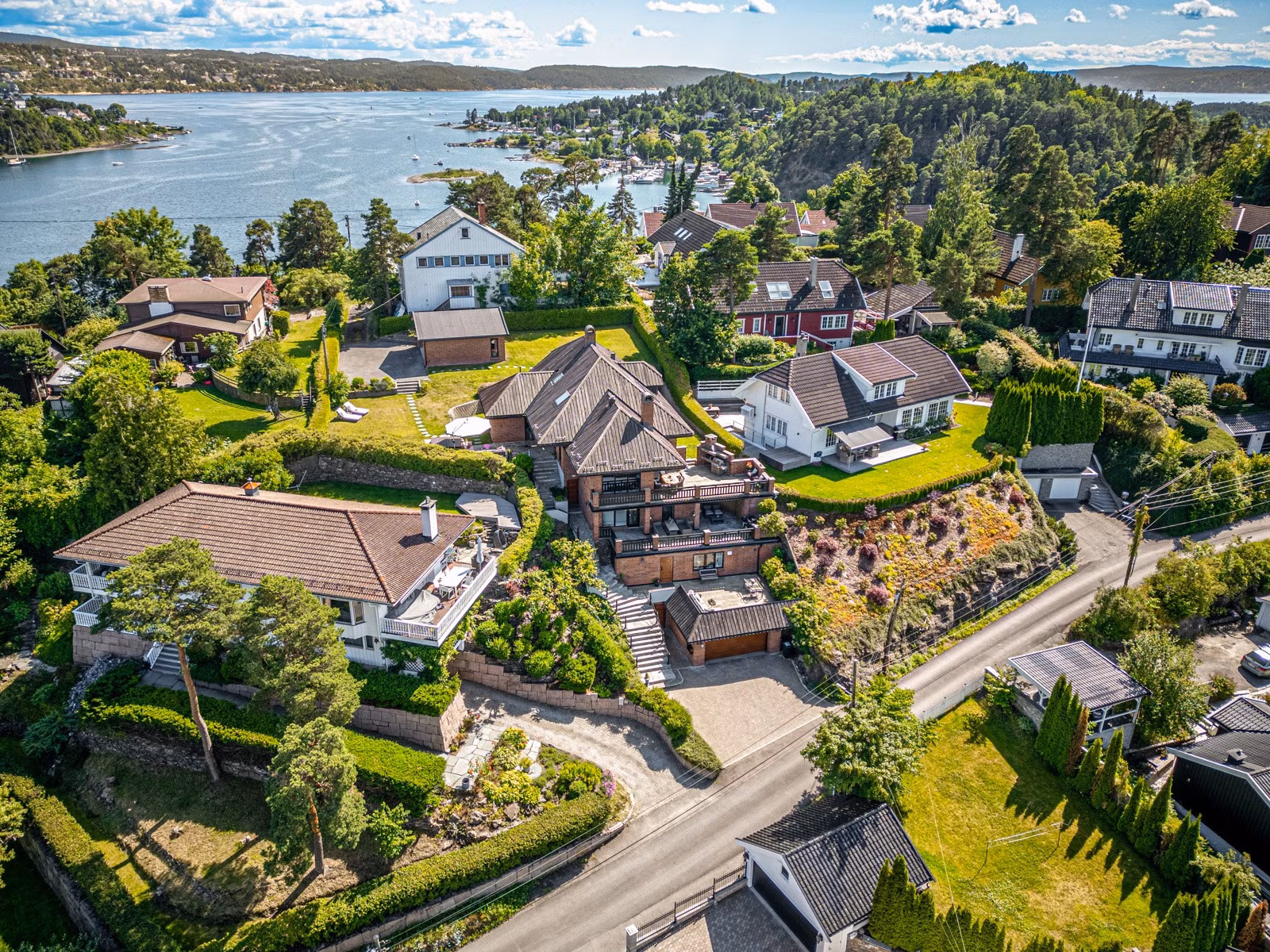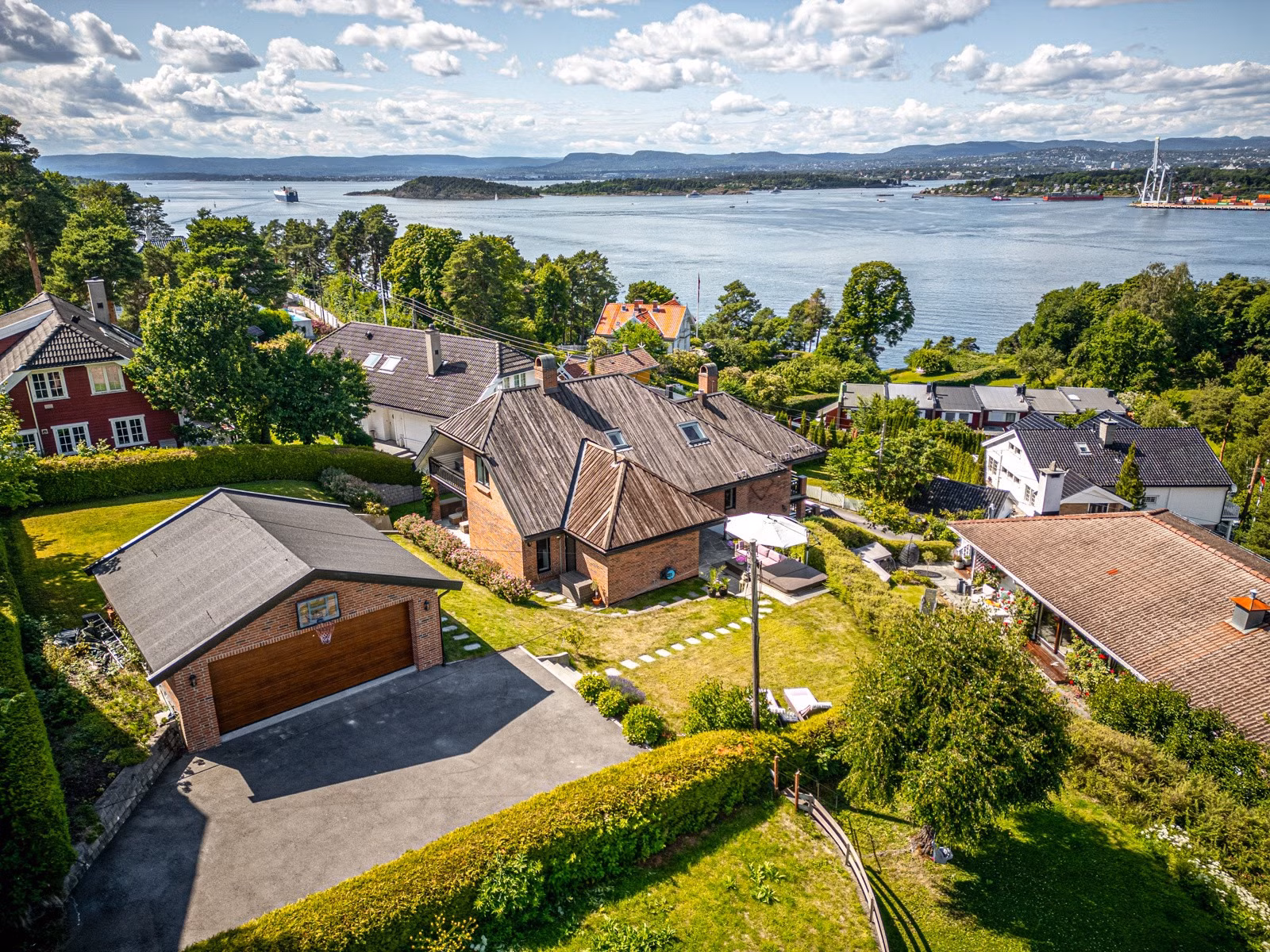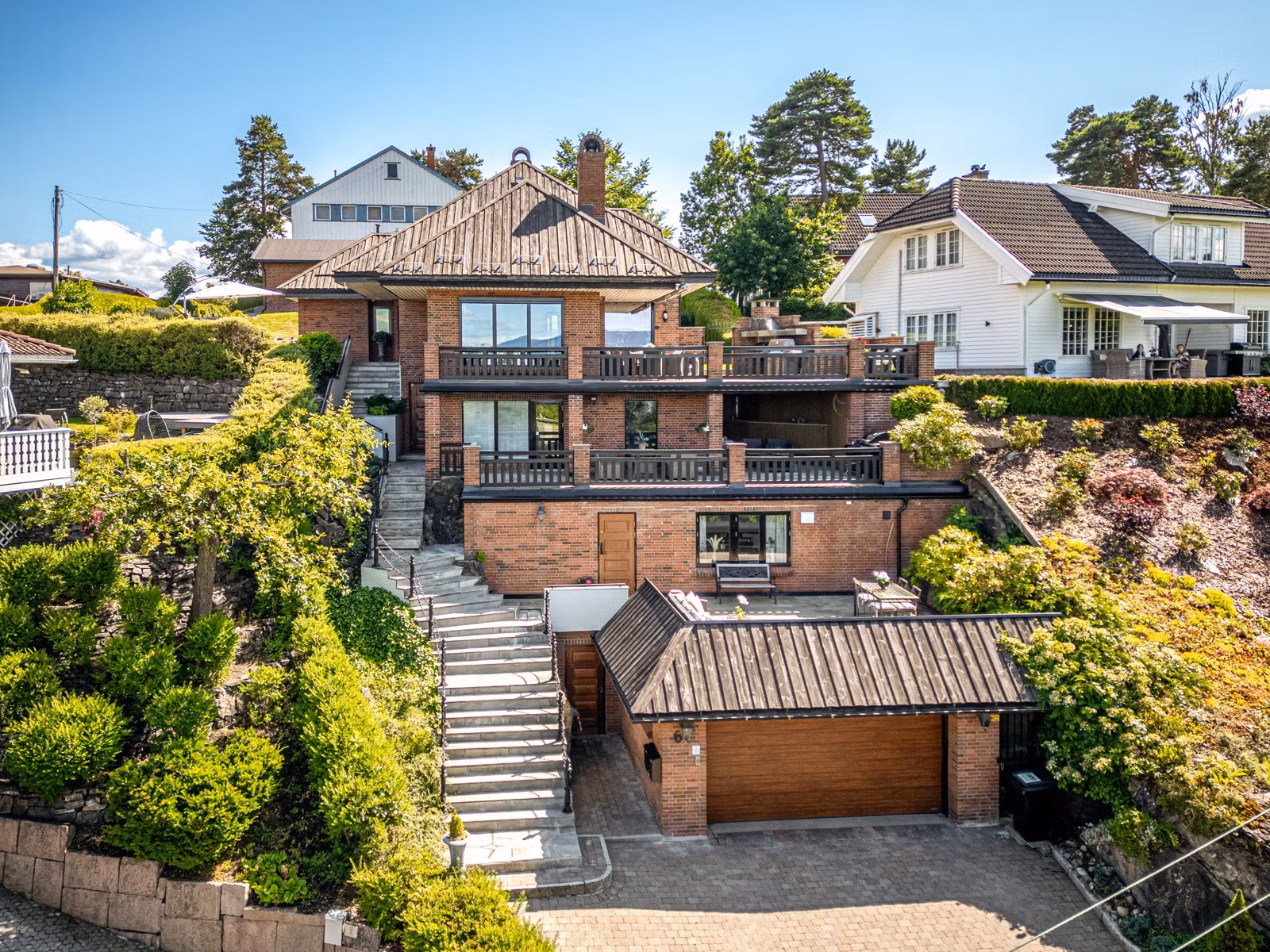 Boligen har panoramautsikt over fjorden og rommer fem soverom, 5 bad og flere oppholdsrom. Det er fire peiser fordelt på ulike etasjer i boligen, og eiendommen tilbyr utleiemuligheter gjennom en egen hybel.