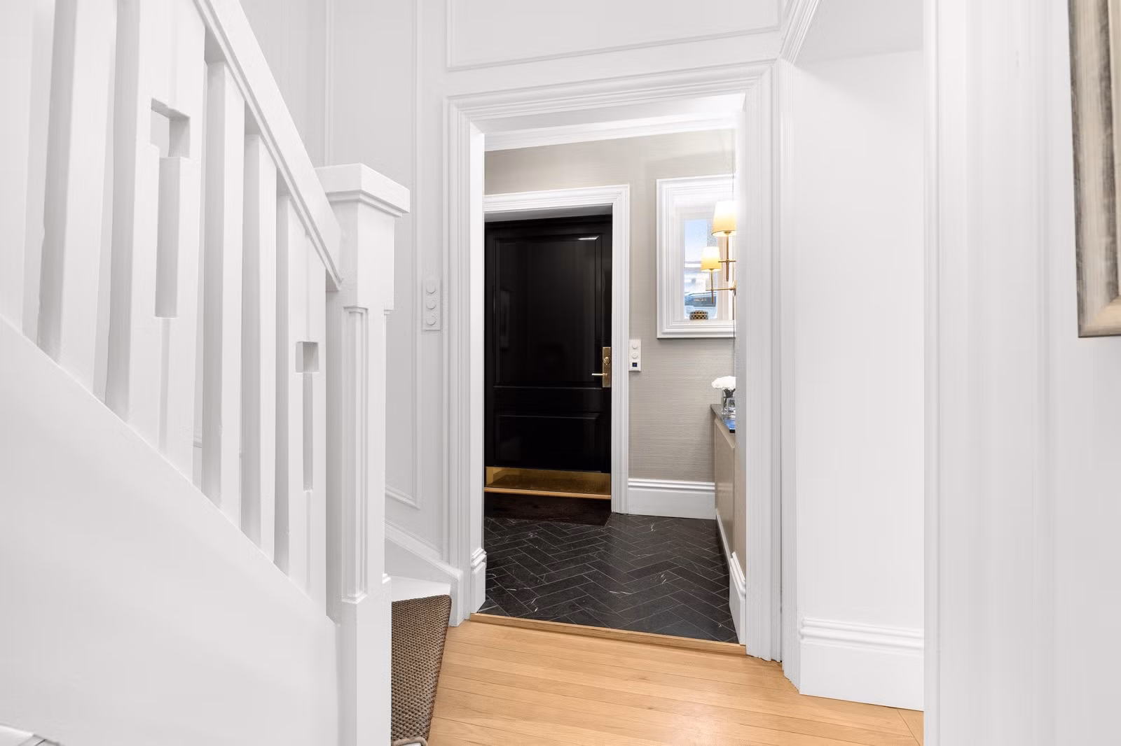 Originale detaljer som blant annet dører, gulv og takhøyde er bevart.