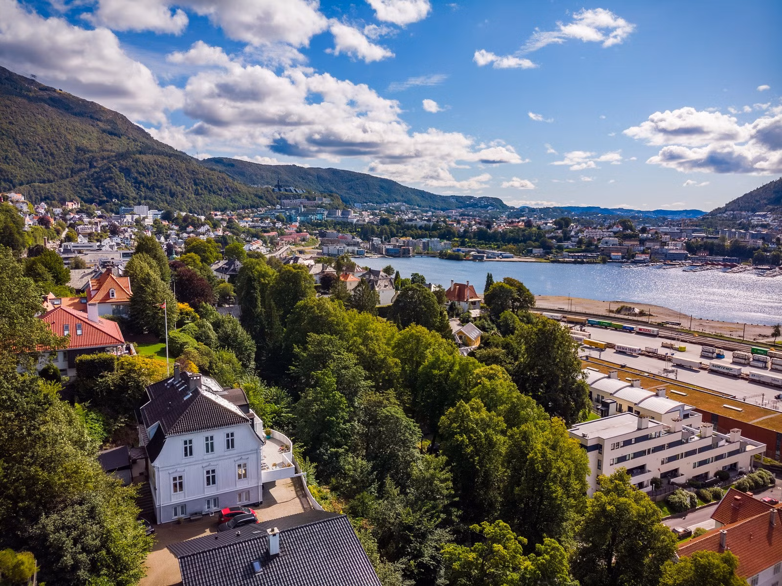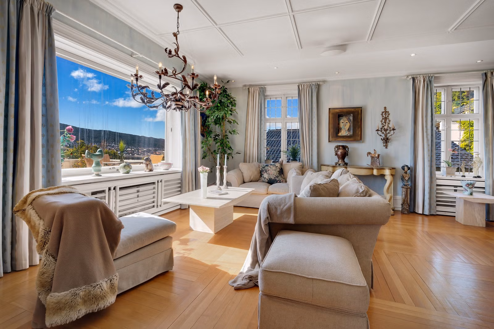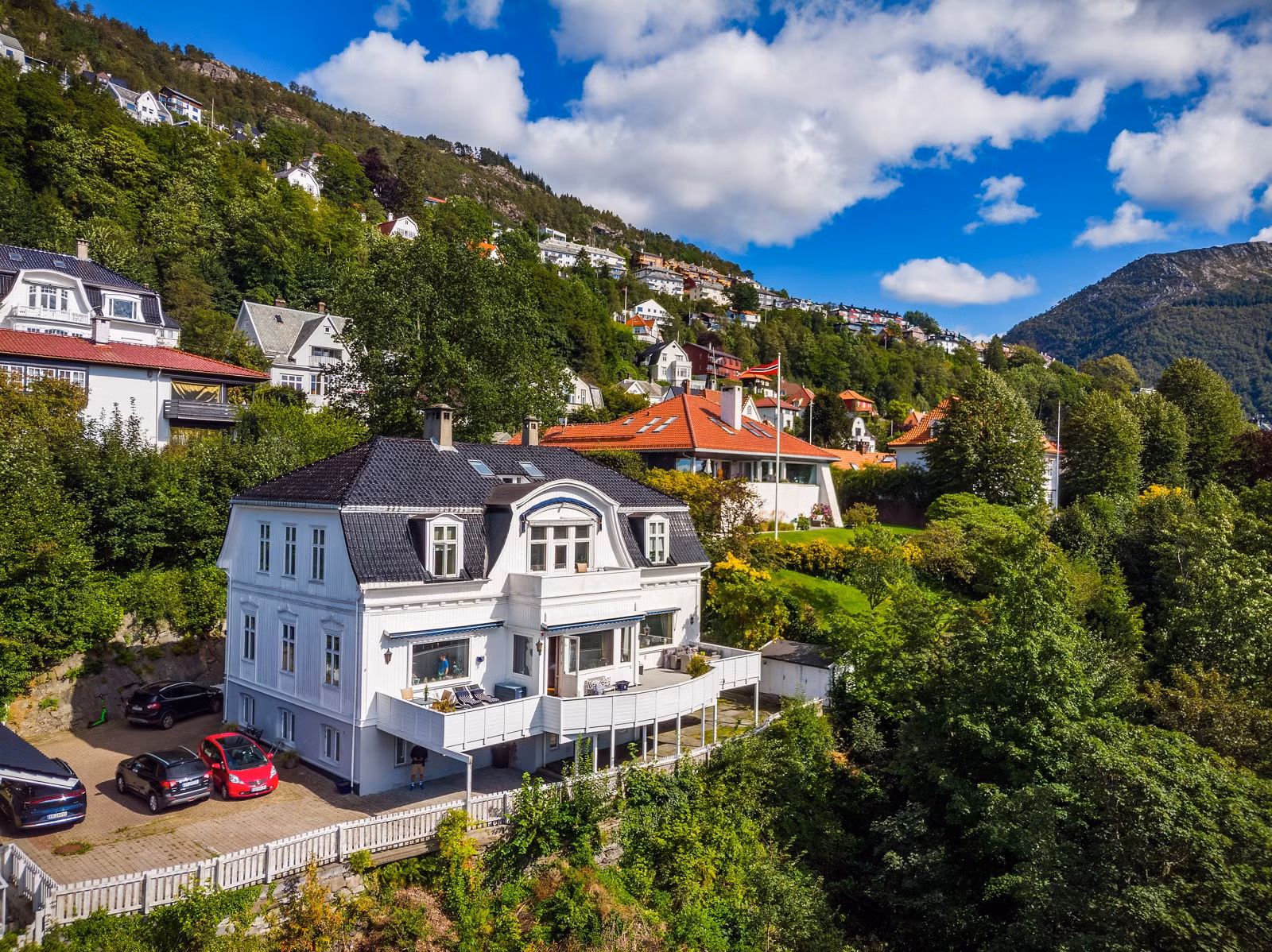 Villaen ligger i Fjellsiden, i et av byens mest ettertraktede boligstrøk. Her får du både privatliv og nærhet til byen. Beliggenheten byr på panoramautsikt mot Bergen sentrum, Løvstakken, Byfjorden og Askøy, samtidig som du bor i gangavstand til sentrum, Haukeland sykehus, Haraldsplass og et rikt utvalg av servicetilbud. Turområder som Fjellveien, Fløyen, Isdalen og Ulriken ligger like ved.