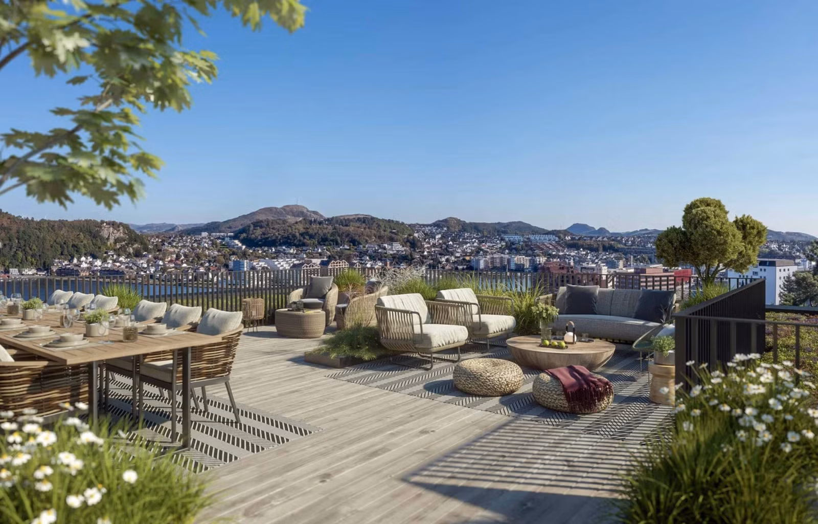 Velkommen til Troneshøyden - leilighet B-H301. Her tilbys salg av kontraktsposisjon til en moderne toppleilighet med fantastisk utsikt, store solrike uteplasser og heis direkte til etasjen. Leiligheten har tre soverom, to bad, gjestetoalett, vaskerom, TV-stue og åpen stue- og kjøkkenløsning, i tillegg til privat takterrasse på 65,2 kvm og to balkonger.