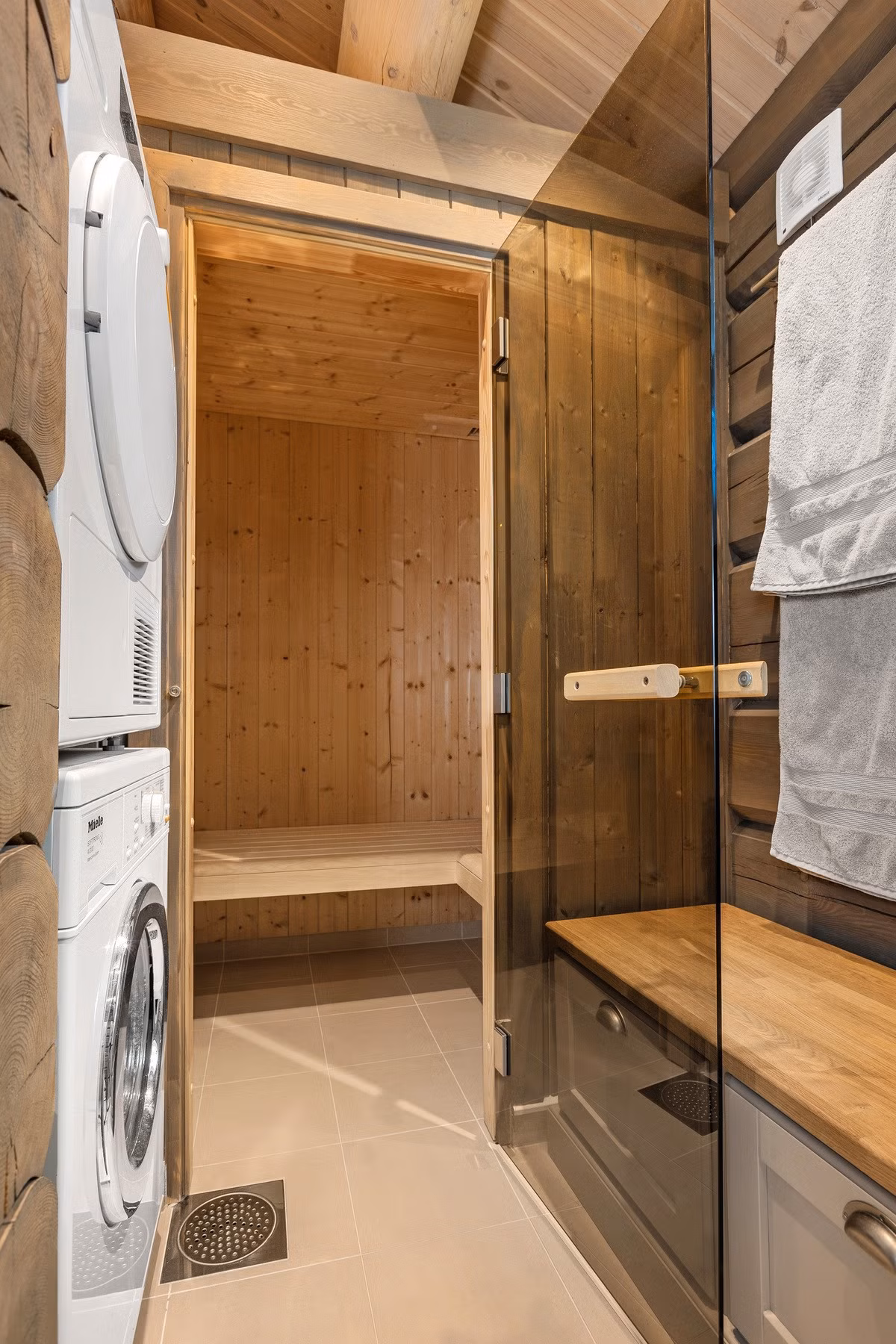 Hytta har to delikate bad, badstue og gode soveromsløsninger, inkludert snekkertilpassede løsninger. Vestvendt veranda og balkong gir nydelig utsikt og solrike uteplasser.
