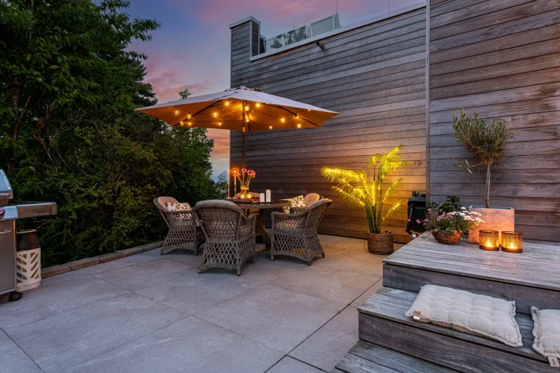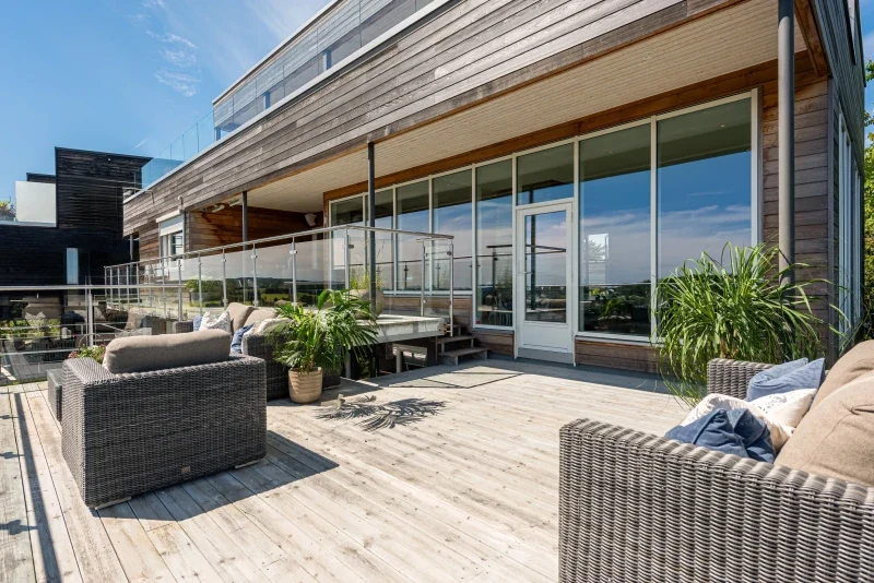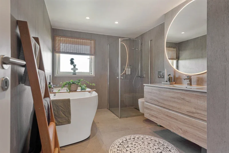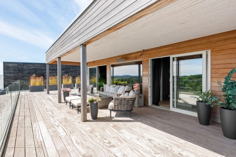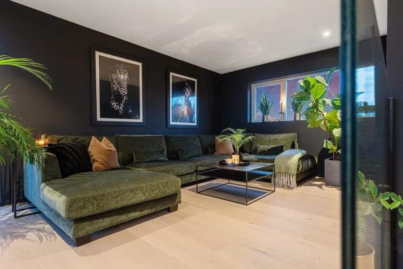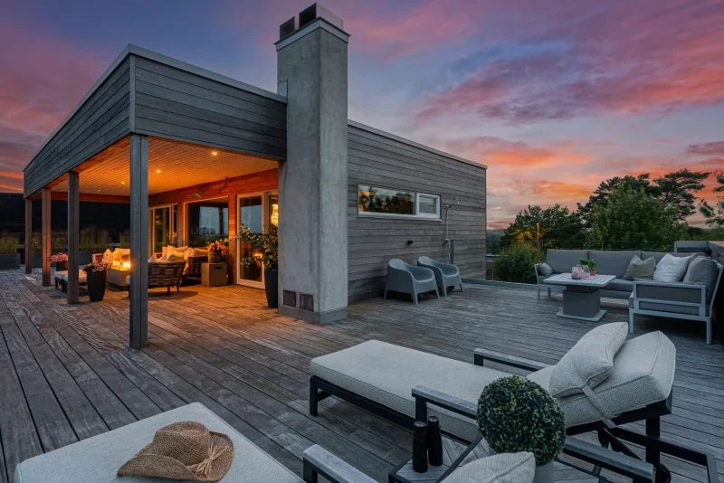 Gjennomgående høy standard og kvalitets materialer er i høy grad benyttet både utvendig og innvendig. Boligen er kledd i Cedertre, liggende bordkledning. Camaru terrassegulv og lekkre stein- og skiferheller. Spennende planløsning over 3 plan, meget innholdsrikt med mange bruksmuligheter.