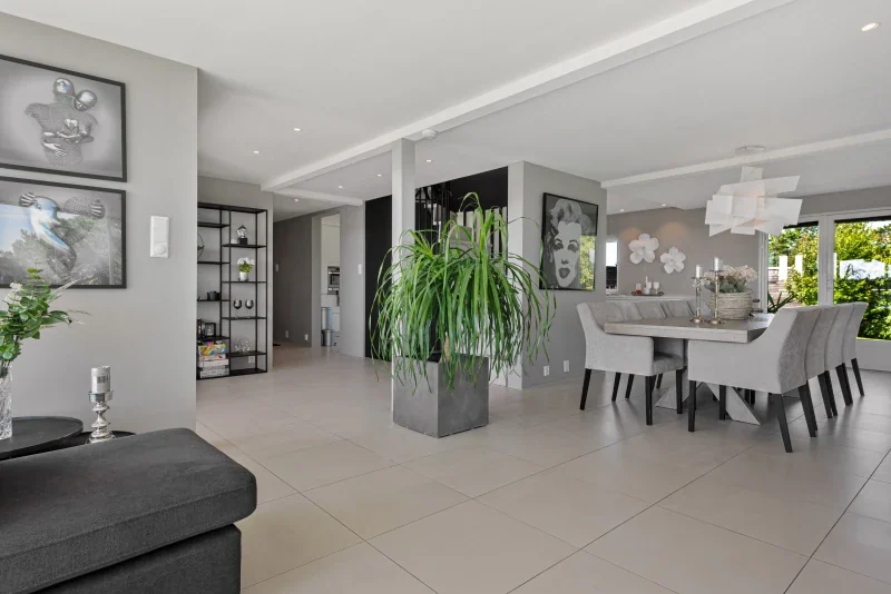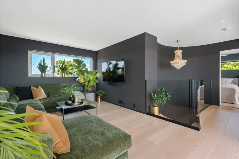 En moderne og tidsriktig villa beliggende på en av Sandefjords høyeste topper, panorama over by, havnen og langt ut fjorden. Sol fra opp, til sent på kveld, nesten i enden av en stille blindvei. Særdeles attraktiv boområde og med gangavstand til det meste. Boligen har blitt etter byggeår, restaurert, påbygget og løftet til et moderne og stilrent hjem.