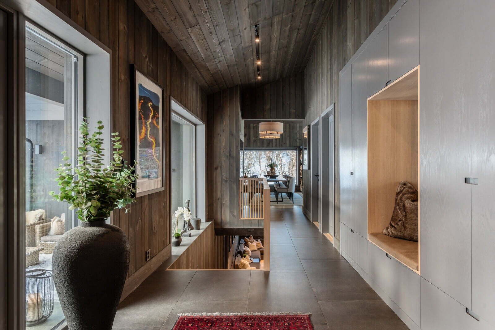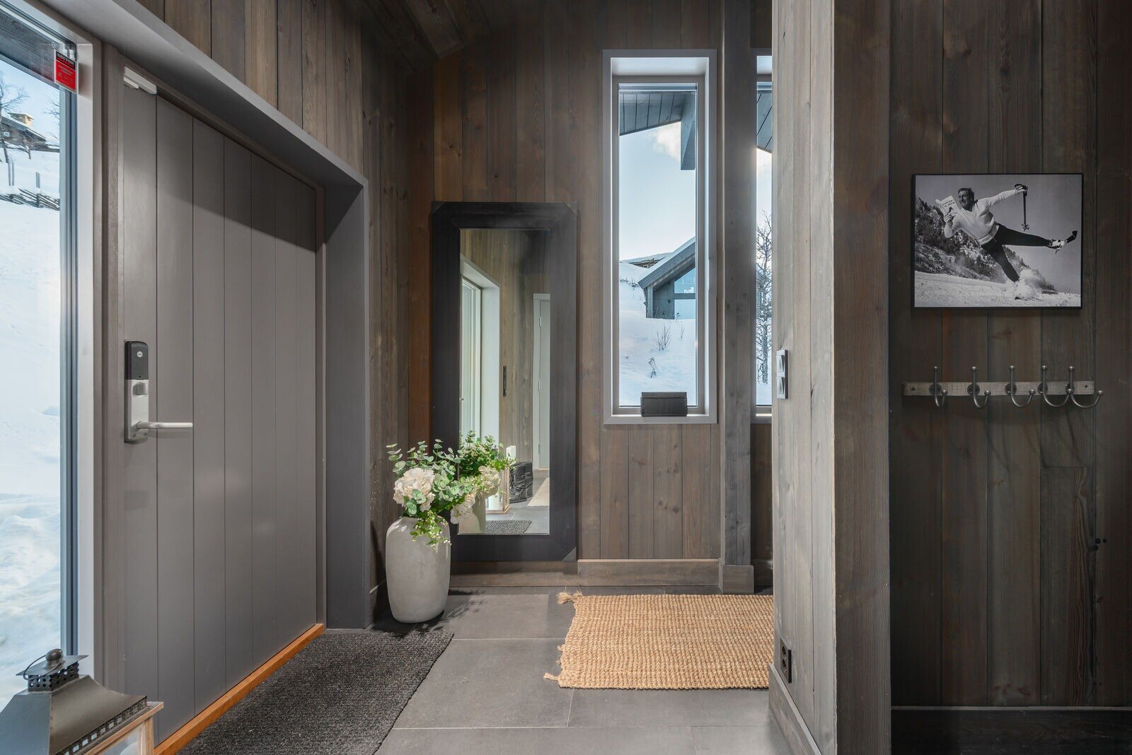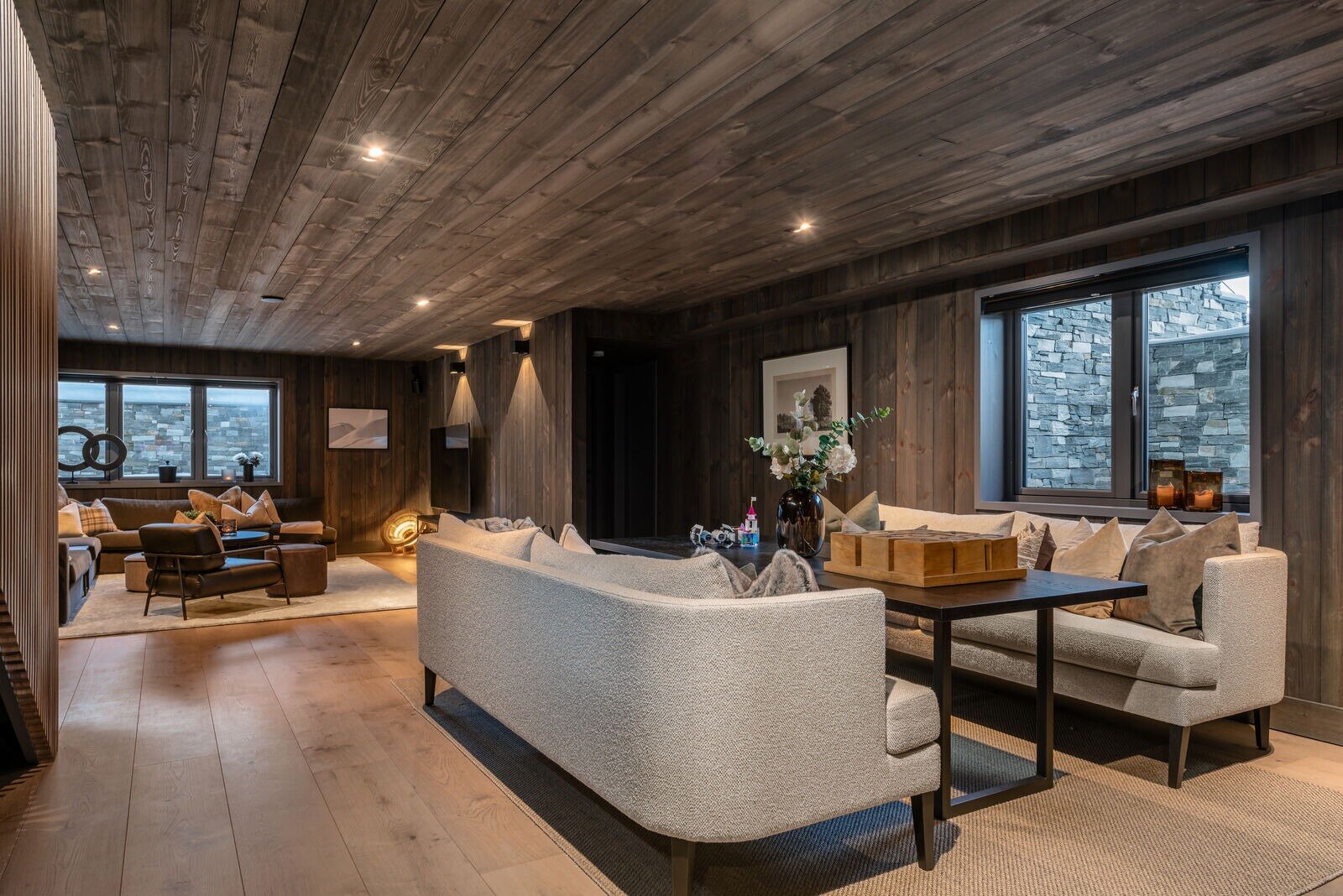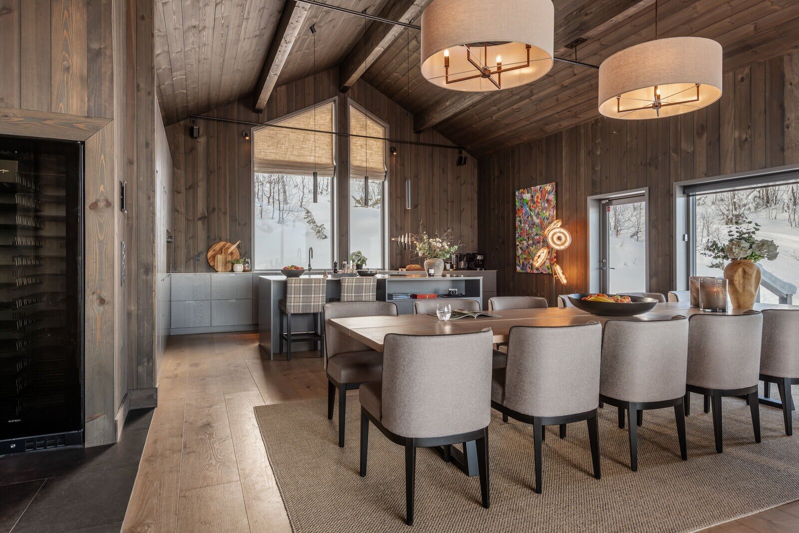 Fantastisk takhøyde, store vindusflater, vakker utsikt, lekker innredning og gode tekniske løsninger er bare noen av adjektivene som yter hytten rettferdighet. Her får man stor åpen stue med lekkert kjøkken, hele åtte soverom (ett innredet som kontor), fire bad, kinorom, tv-stue, egen spa avdeling - og dette er langt fra alt herligheten rommer.