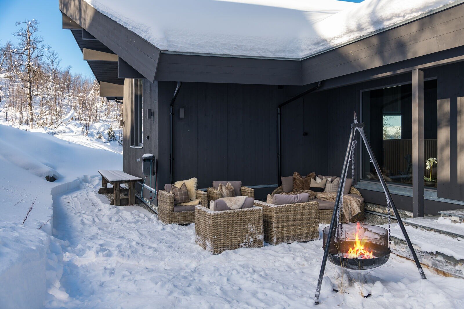 Hytta ligger vakkert og usjenert til med ski inn – ski ut til både alpinbakker og langrennsløyper. Her kan du spenne på deg skiene rett utenfor døren og gli rett ut i eventyret.