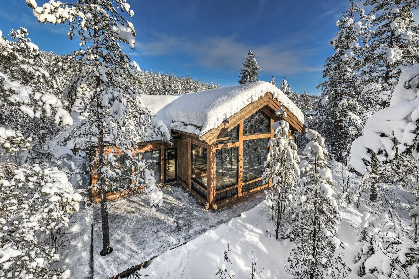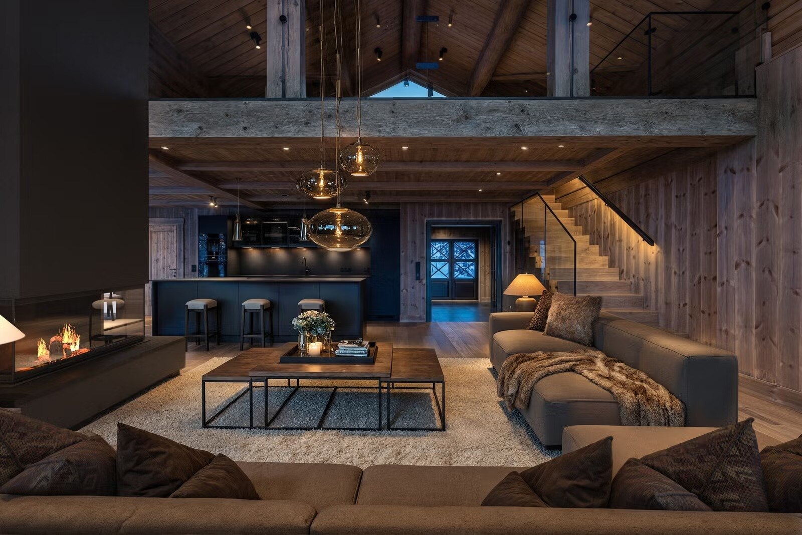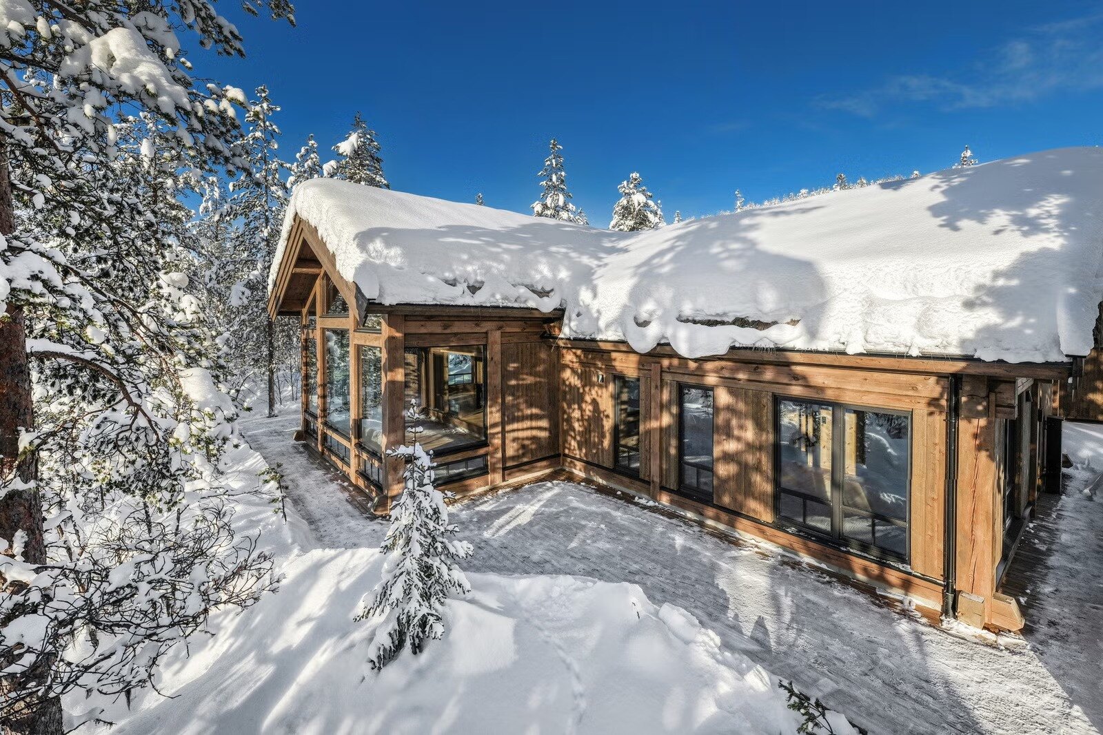 Denne storslåtte hytta ligger privat til i enden av vei, helt uten innsyn, og byr på en sjelden kombinasjon av arkitektonisk særpreg, god romfølelse og høy standard. Med sine ca. 250 kvm og generøs takhøyde fremstår hytta luftig, elegant og innbydende.
