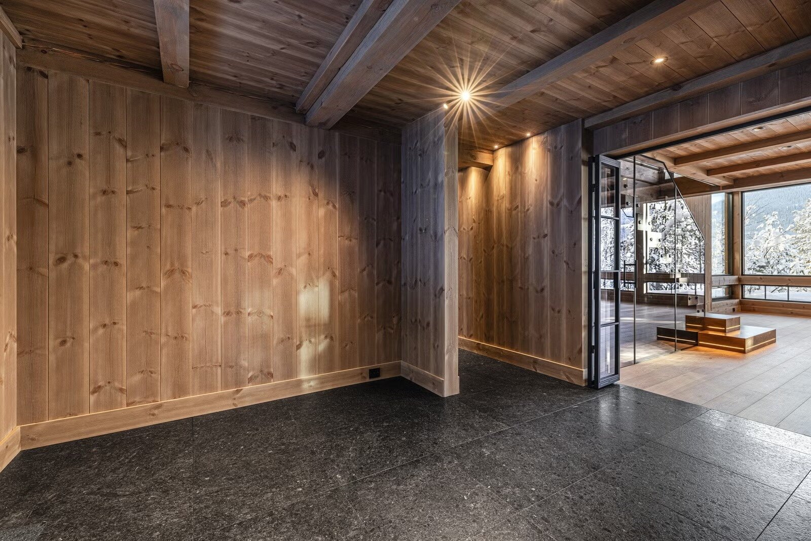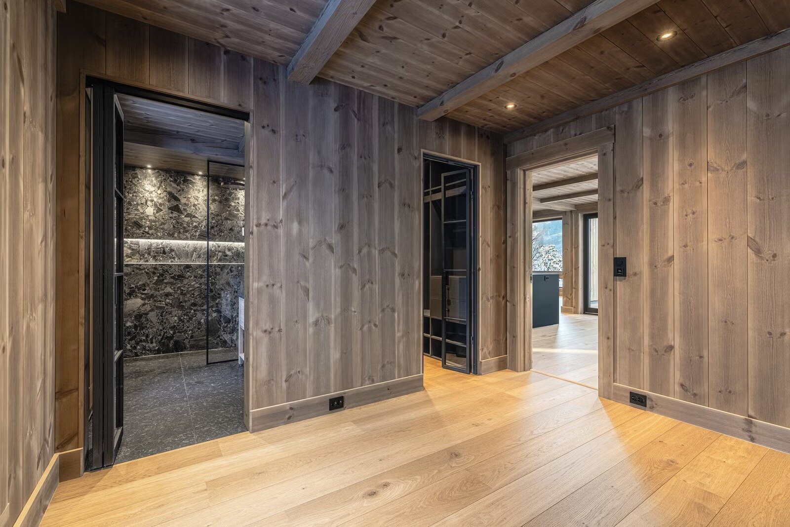 Store, solrike uteplasser omkranser hytta og gir rikelig med rom for både avslapning og sosiale sammenkomster. Innvendig møter du entré/hall, skigarderobe/klesrom og hele 7 soverom. Hovedsoverommet har både eget baderom og walk-in closet. Totalt finnes 3 baderom samt separat gjestetoalett. Ett av baderommene er utformet som en velværeavdeling med badstue og direkte utgang til terrasse, klargjort for fremtidig jacuzzi.