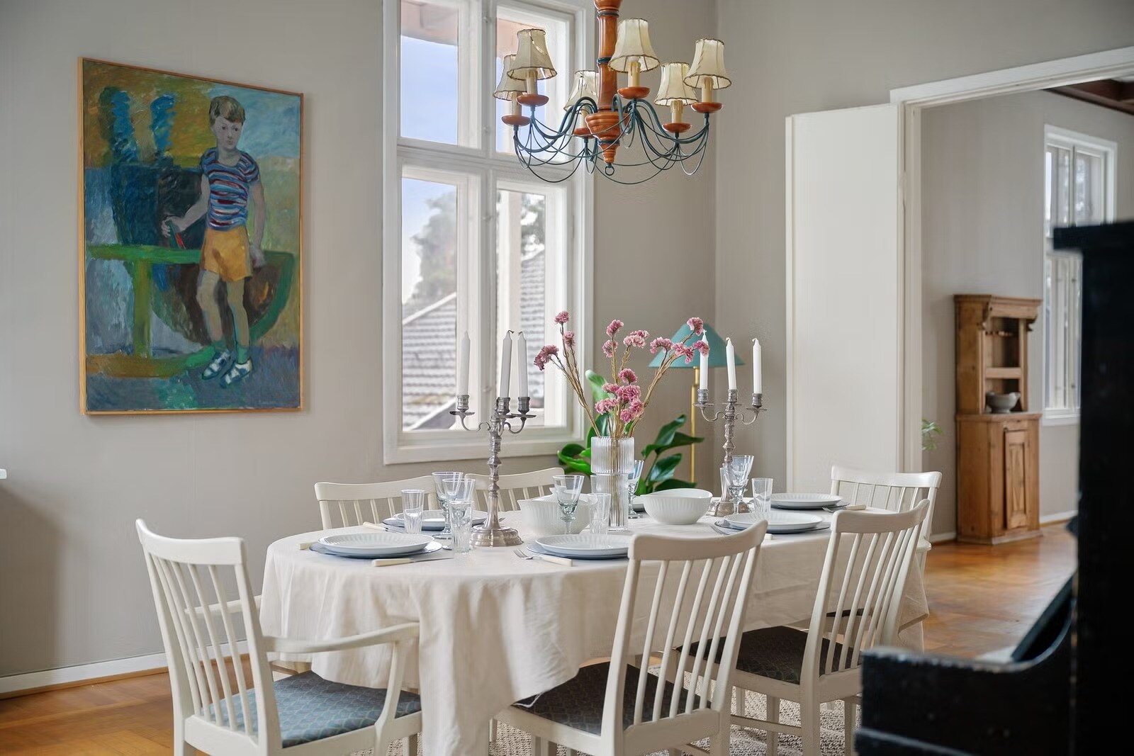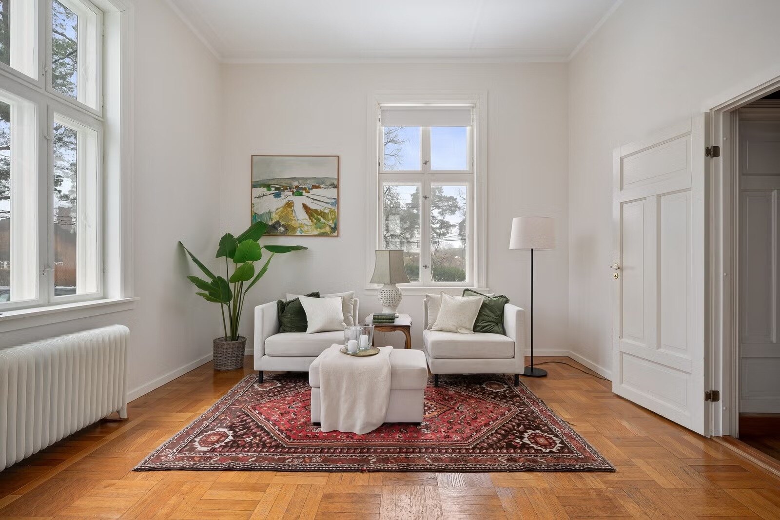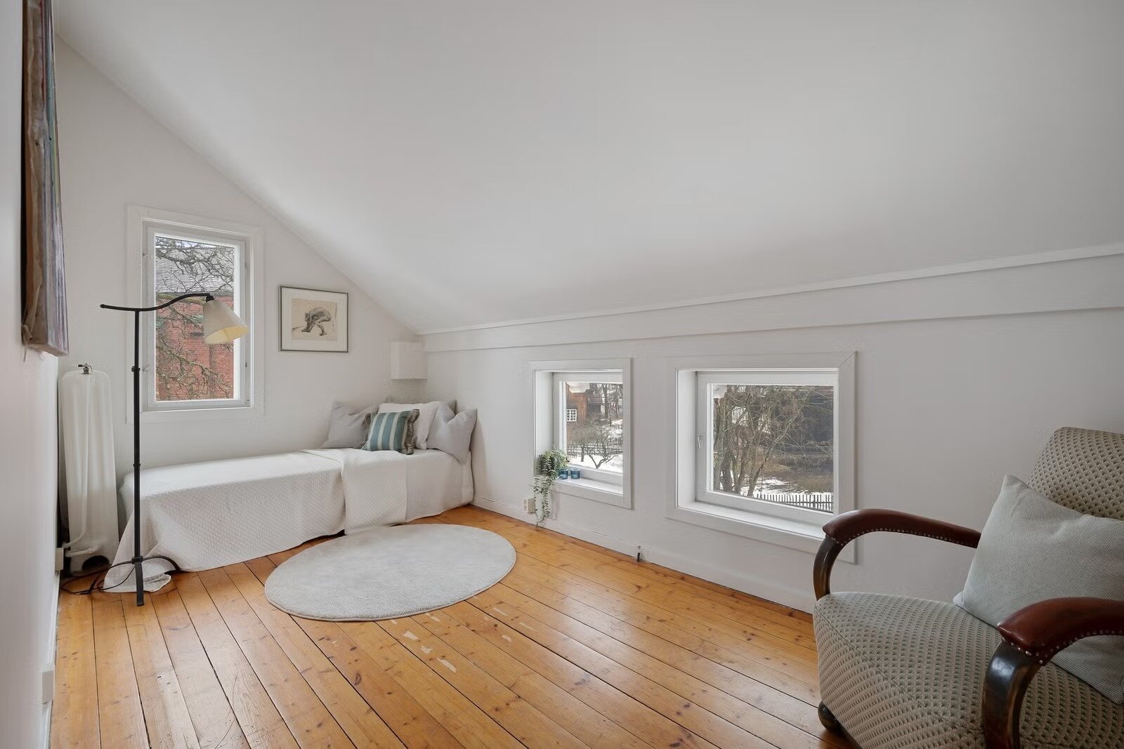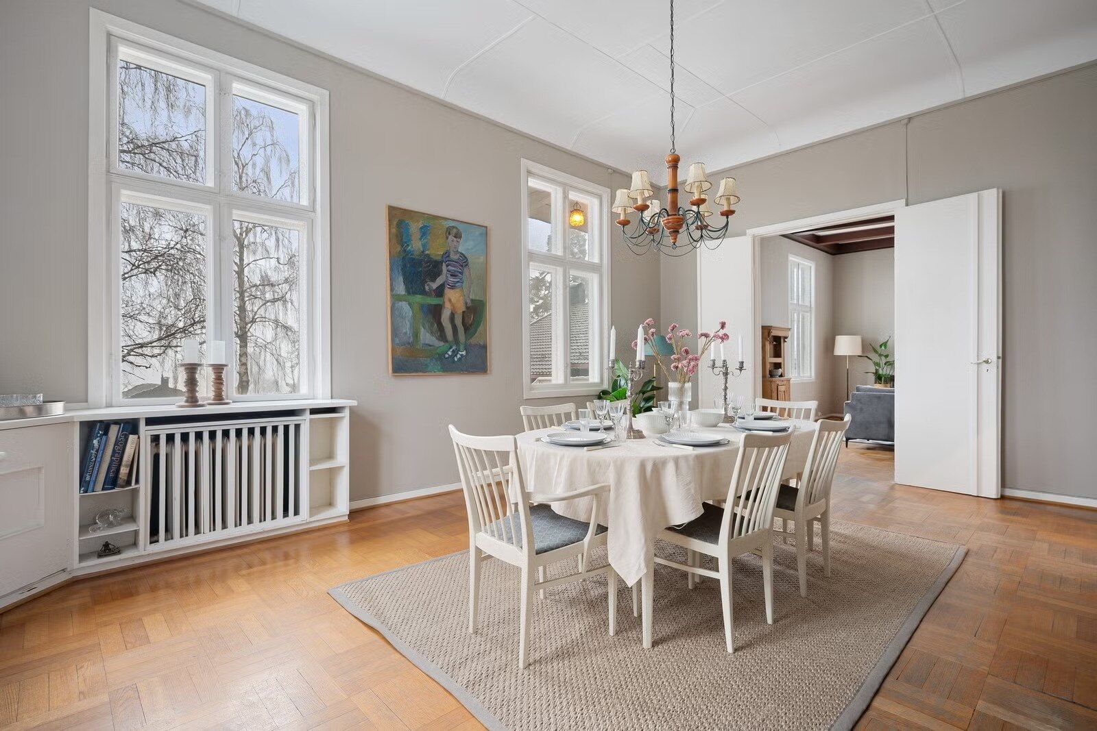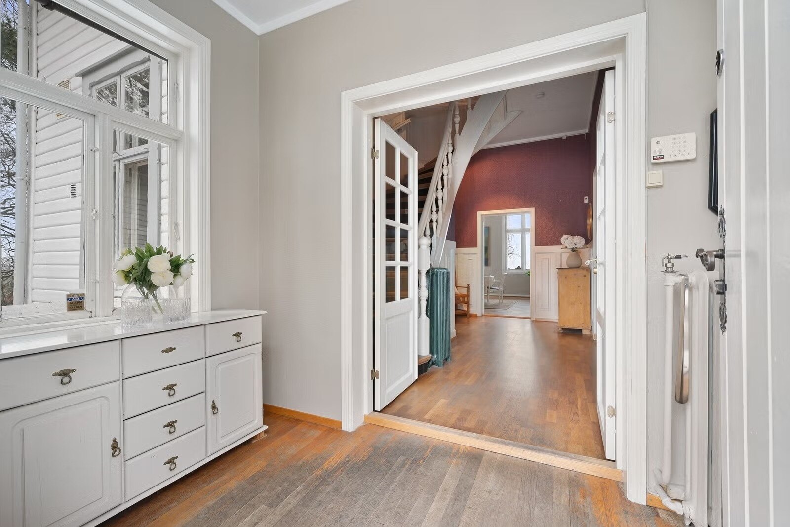 Dette er en eiendom for den som ser muligheter – enten man ønsker å videreutvikle en staselig villa med historisk preg, eller utforske eiendommens utviklingspotensial. Hovedhuset er opprinnelig oppført i 1895 og fremstår som et hjem med særpreg og tidstypiske kvaliteter. Boligen går over tre etasjer, inkludert rå-kjeller, og inneholder romslige stuer med generøs takhøyde, store vindusflater og en atmosfære som kun klassiske villaer kan tilby. Det er behov for generell oppgradering av boligen.