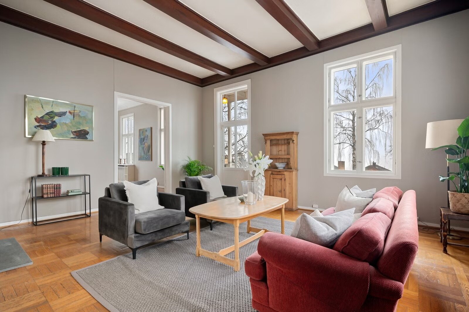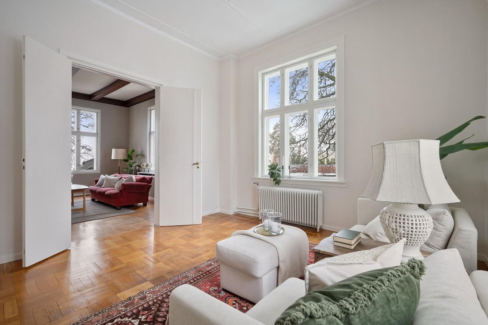 På en av de mest attraktive adressene på Vinderen ligger Grimelundsveien 7 – en helt spesiell eiendom med rik historie, karakter og enestående sol- og utsiktsforhold. Eiendommen ligger høyt og fritt på en romslig tomt på hele 1,4 mål, og byr på en sjelden kombinasjon av landlig ro, privat atmosfære og kort avstand til byens fasiliteter.