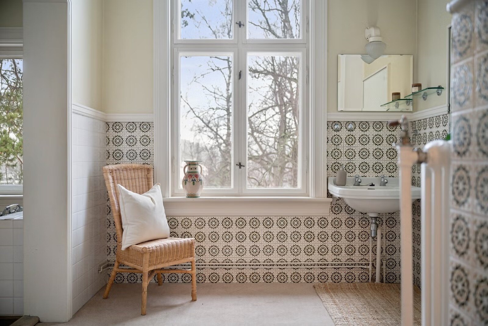 Vakker og historisk villaeiendom med flott utsiktsbilde.