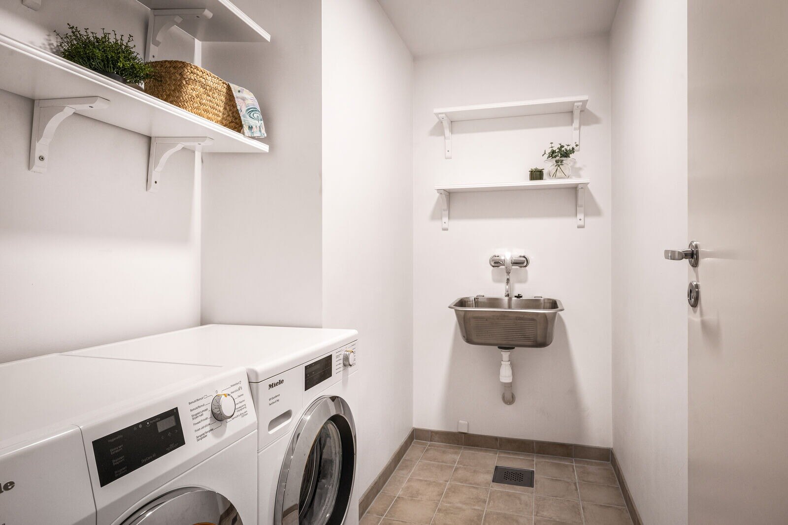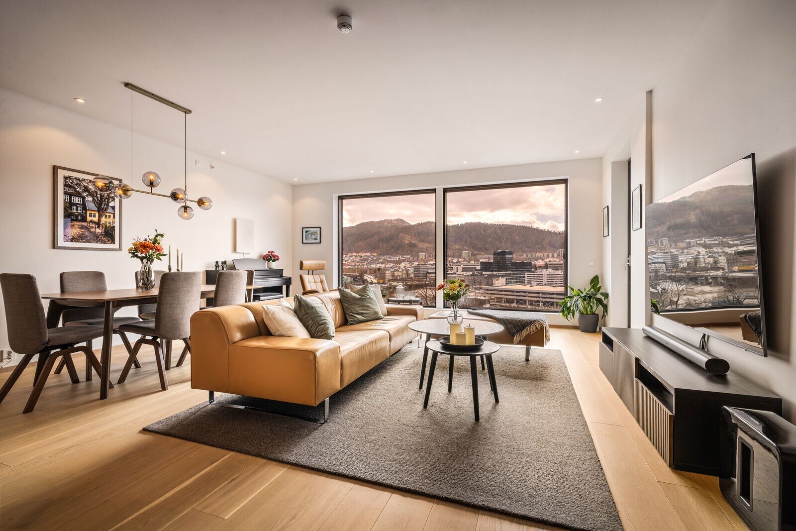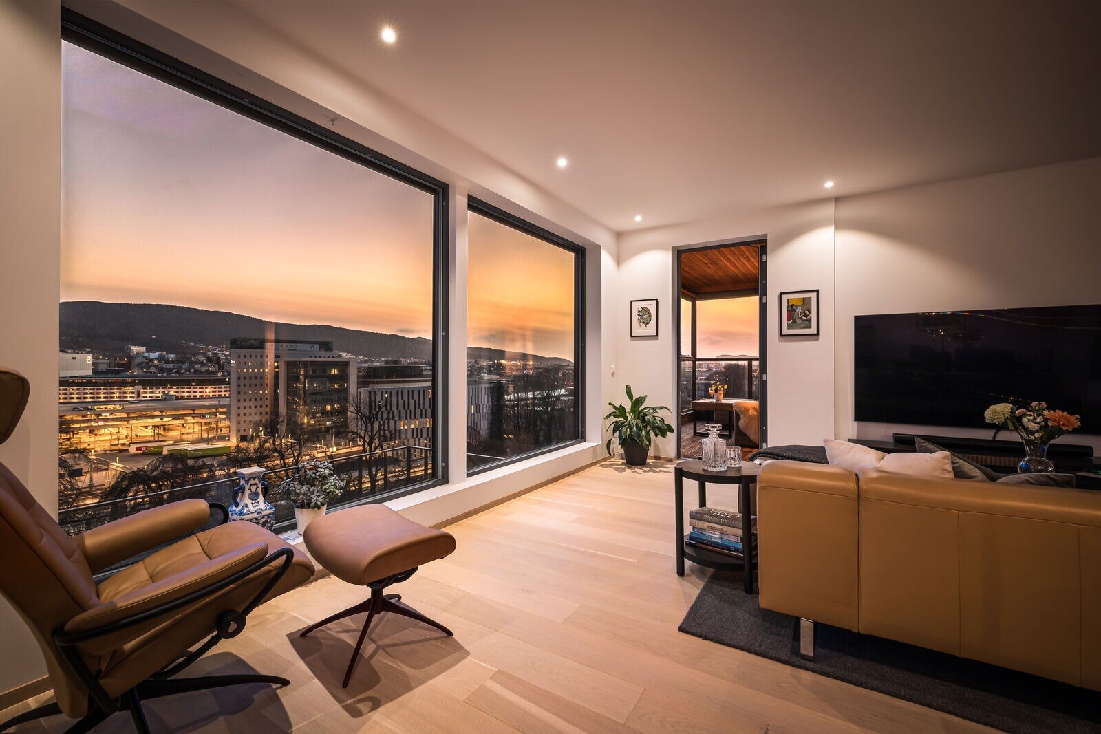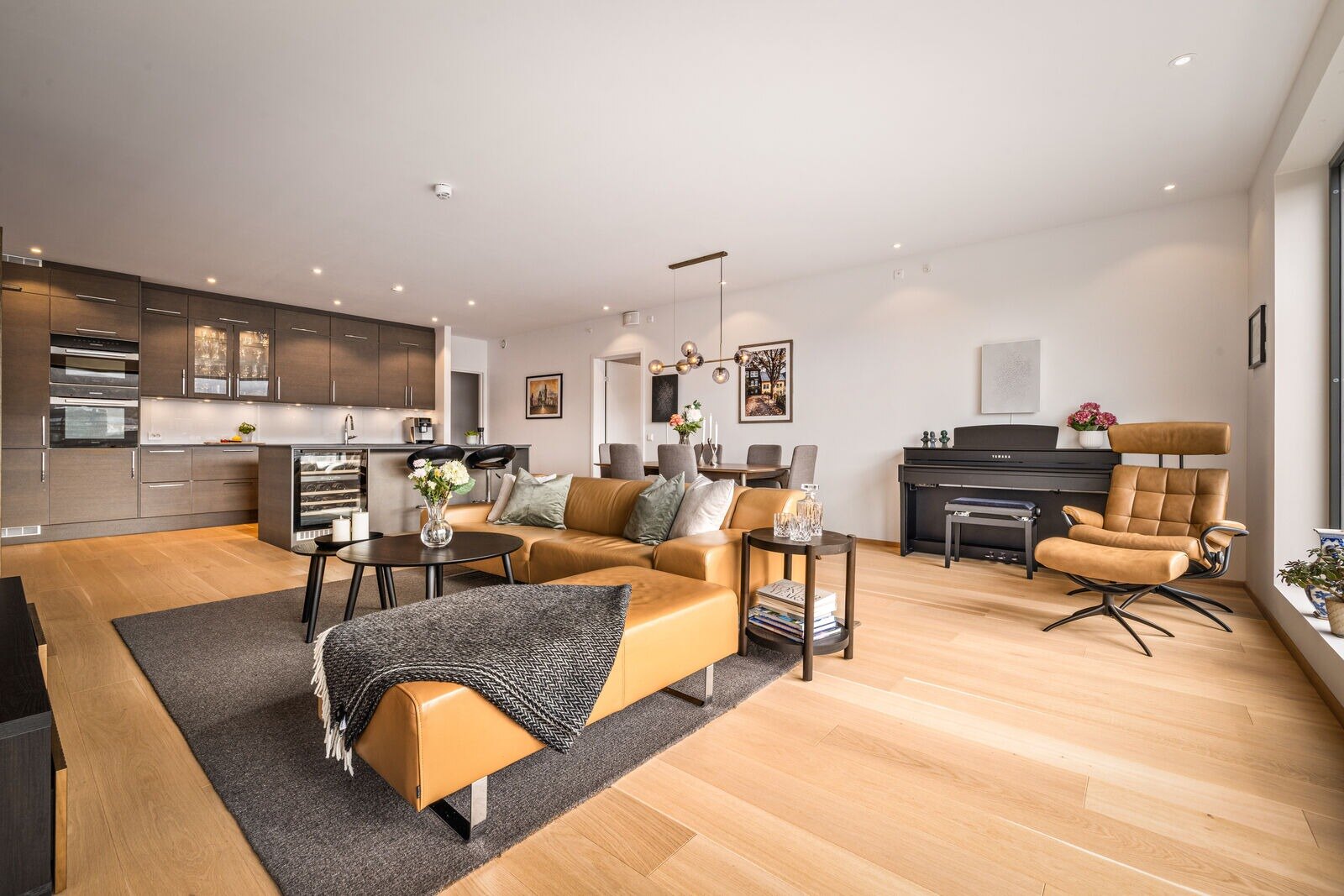 Av kvaliteter kan leiligheten skilte med Smarthus funksjon, Sigdal kjøkken med Miele hvitevarer, moderne baderom oppgradert med ekstra store fliser, separat vaskerom og tre romslige soverom.