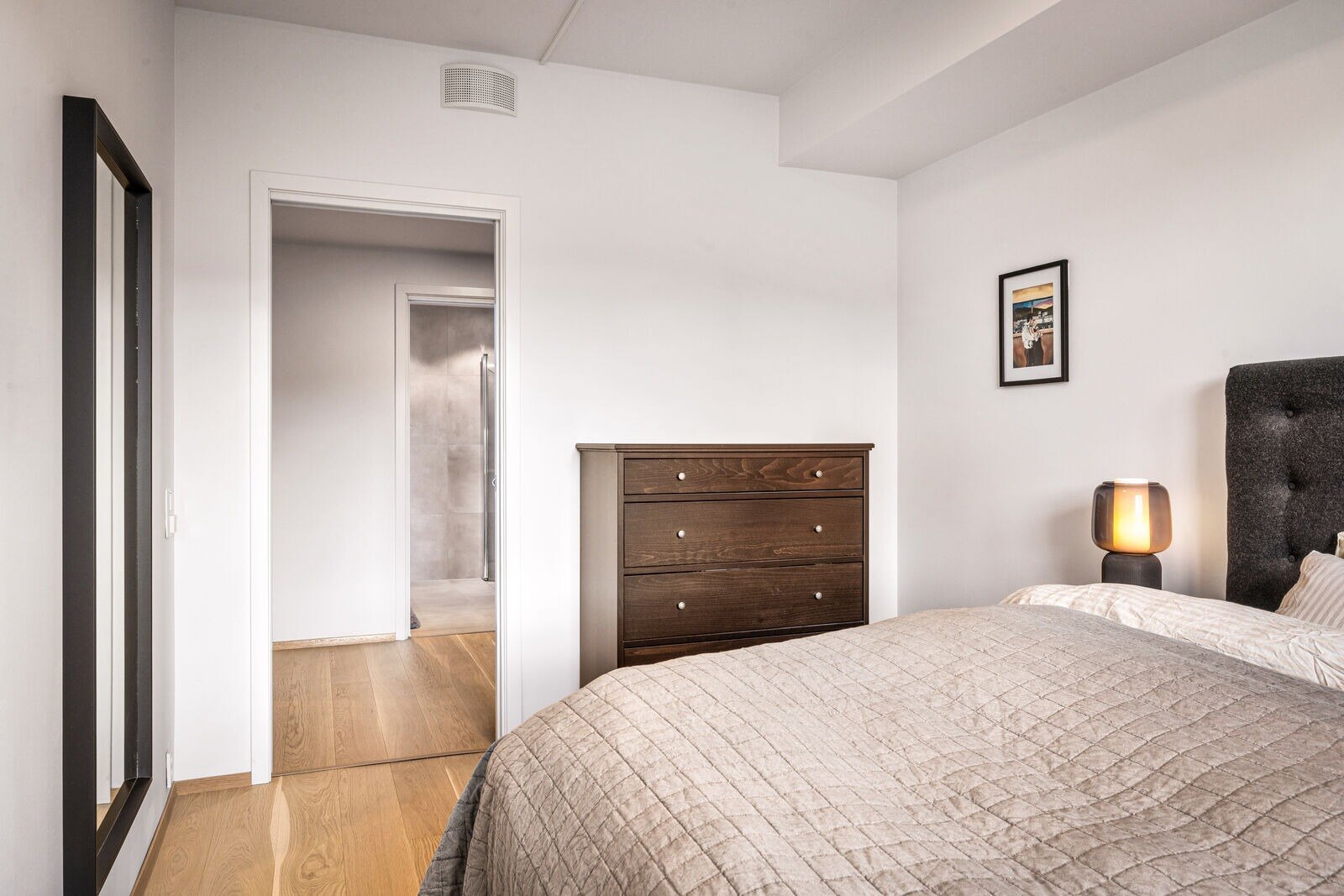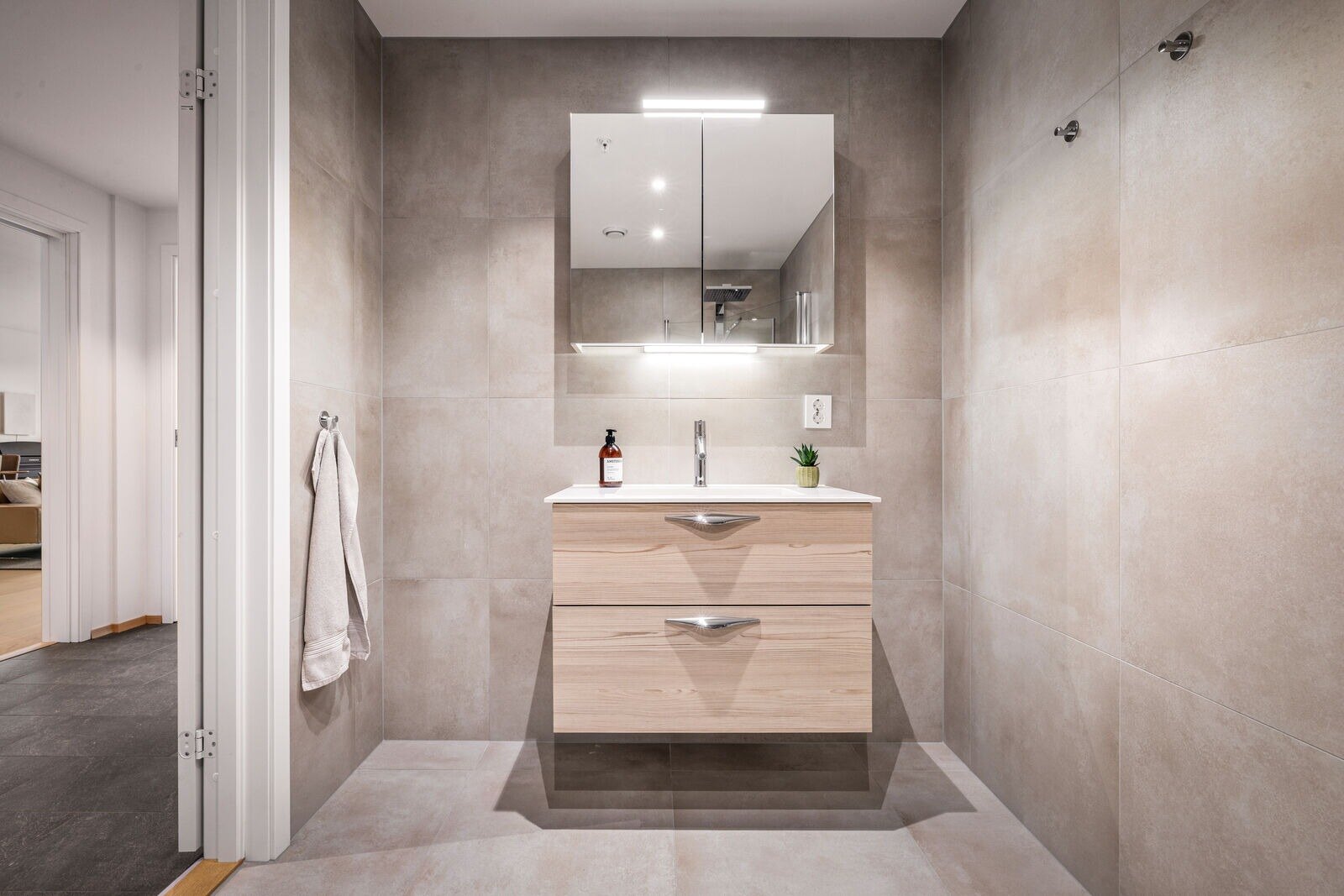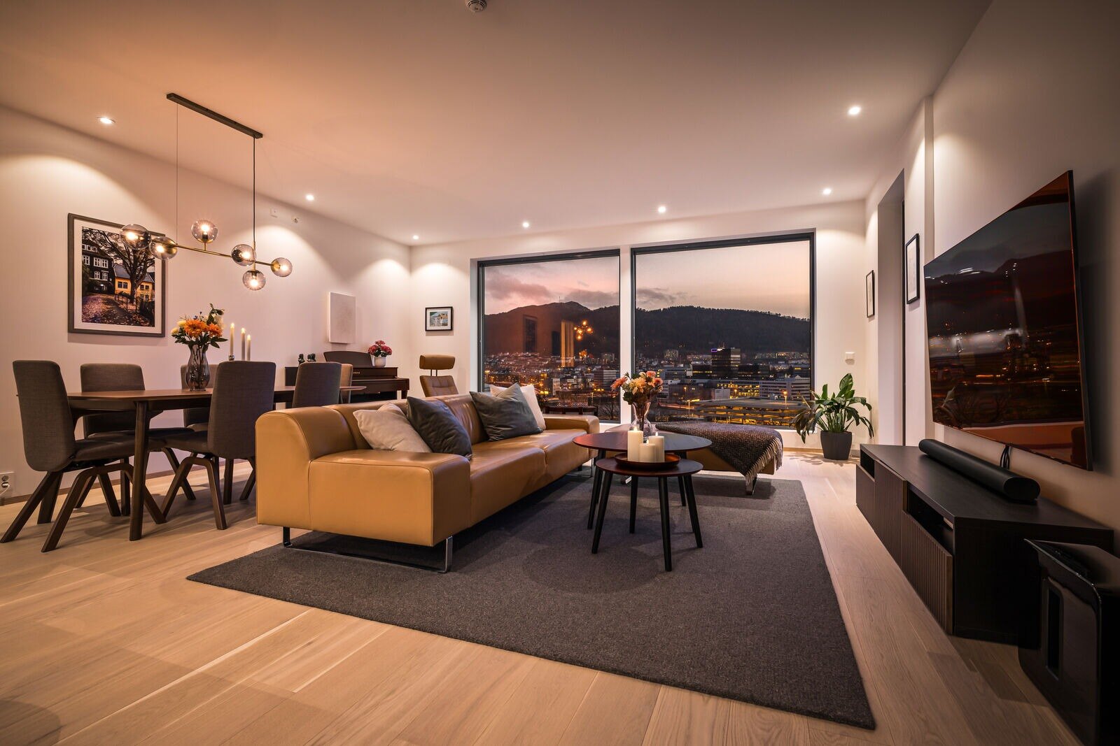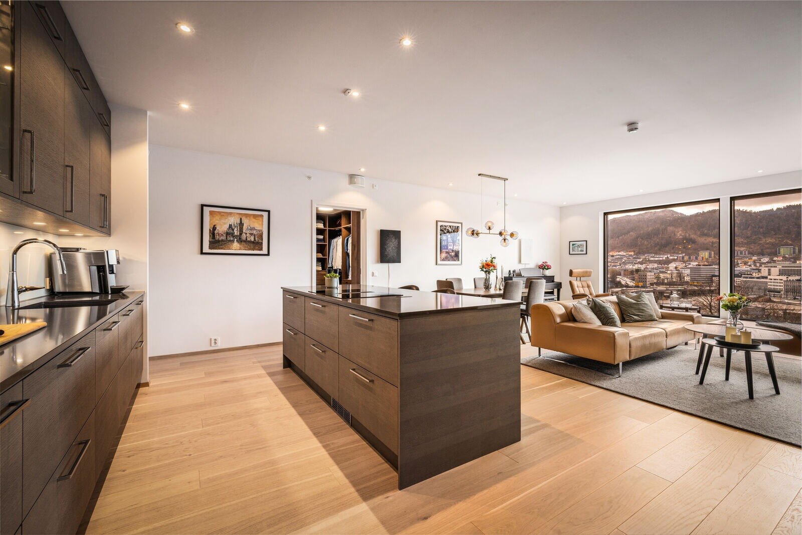 Av kvaliteter kan leiligheten skilte med Smarthus funksjon, Sigdal kjøkken med Miele hvitevarer, moderne baderom oppgradert med ekstra store fliser, separat vaskerom og tre romslige soverom.