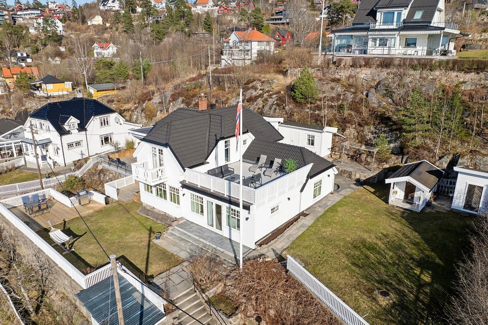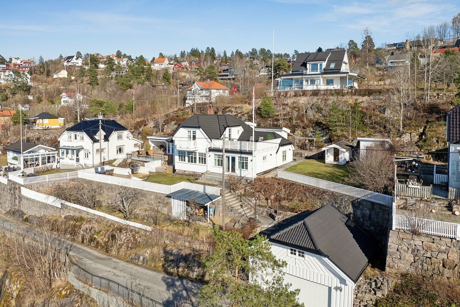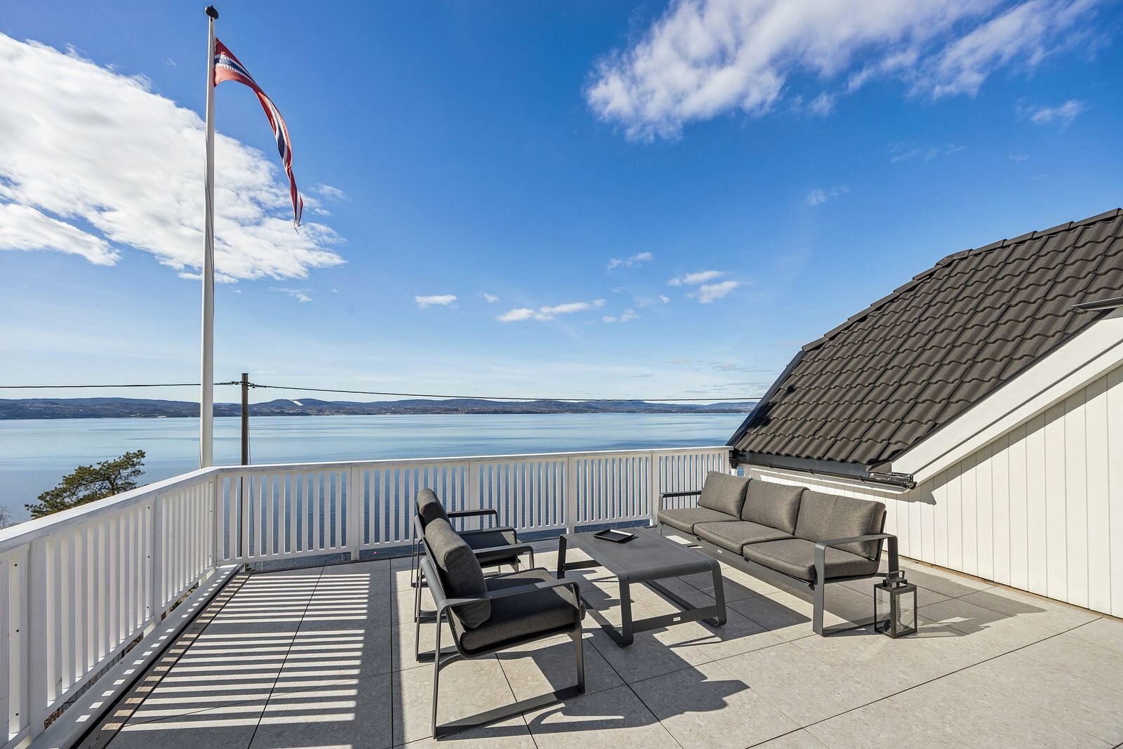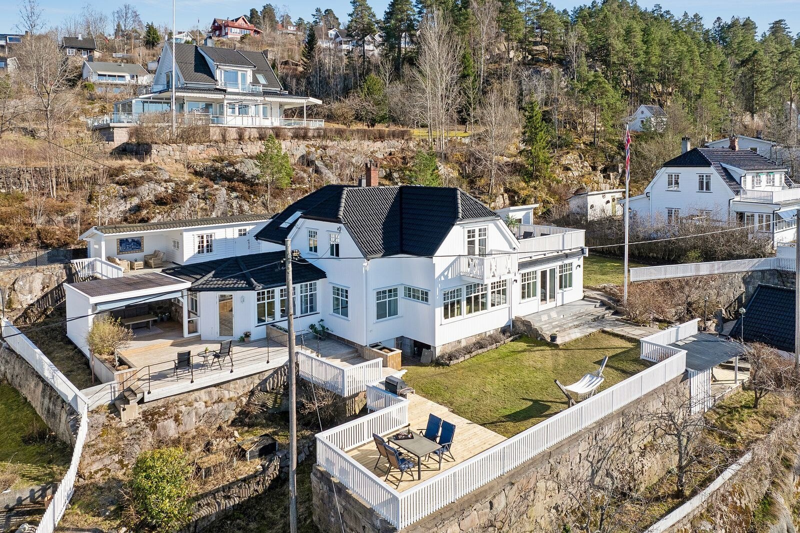 Eiendommen ligger høyt og fritt i terrenget med en fantastisk utsikt. Store terrasseflater, gode solforhold og gjennomtenkte løsninger inne og ute gir en bolig som kombinerer komfort, privatliv og livskvalitet. Her bor du så nær sjøen at du kan sovne til lyden av bølgeskvulp.