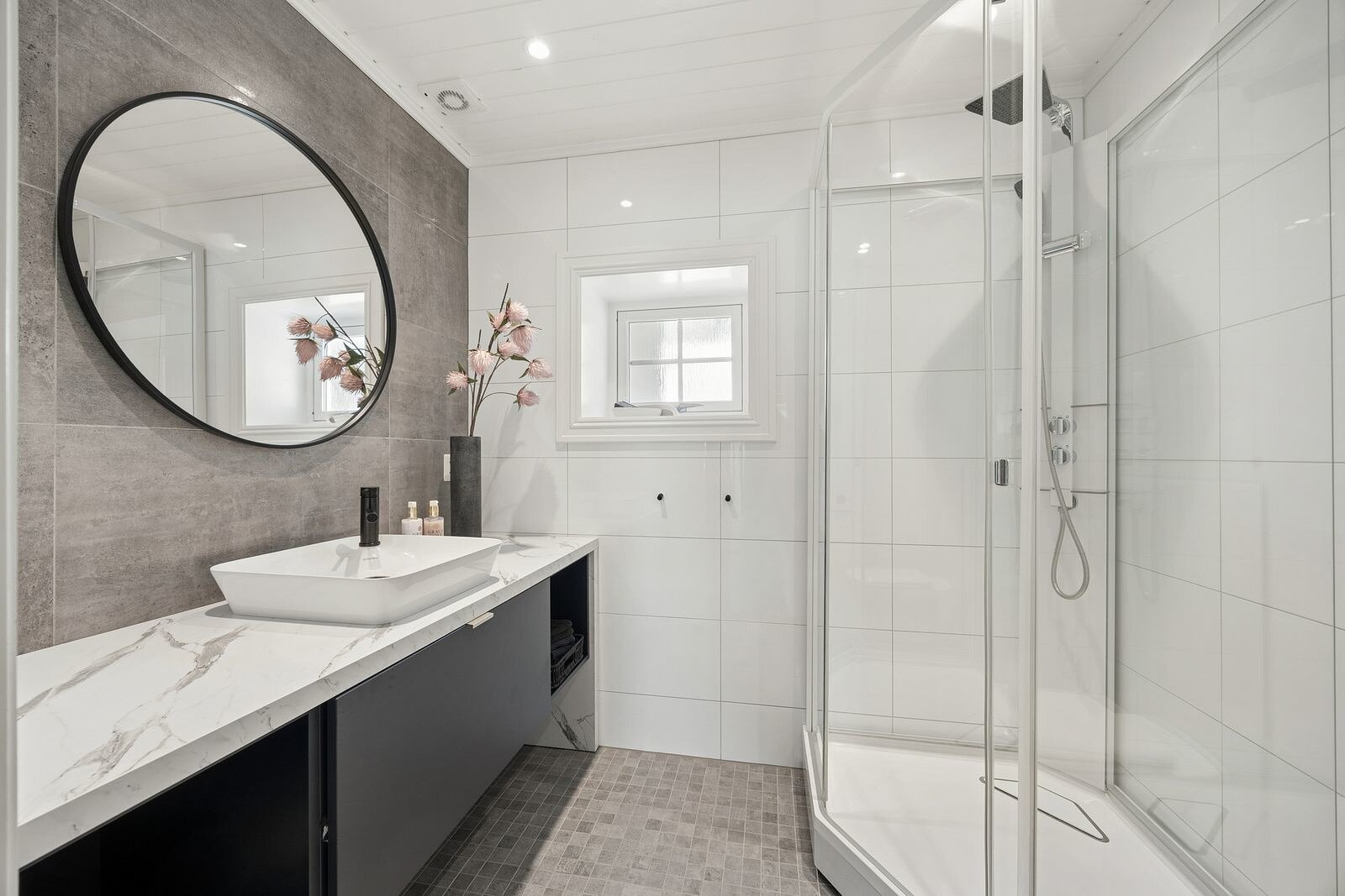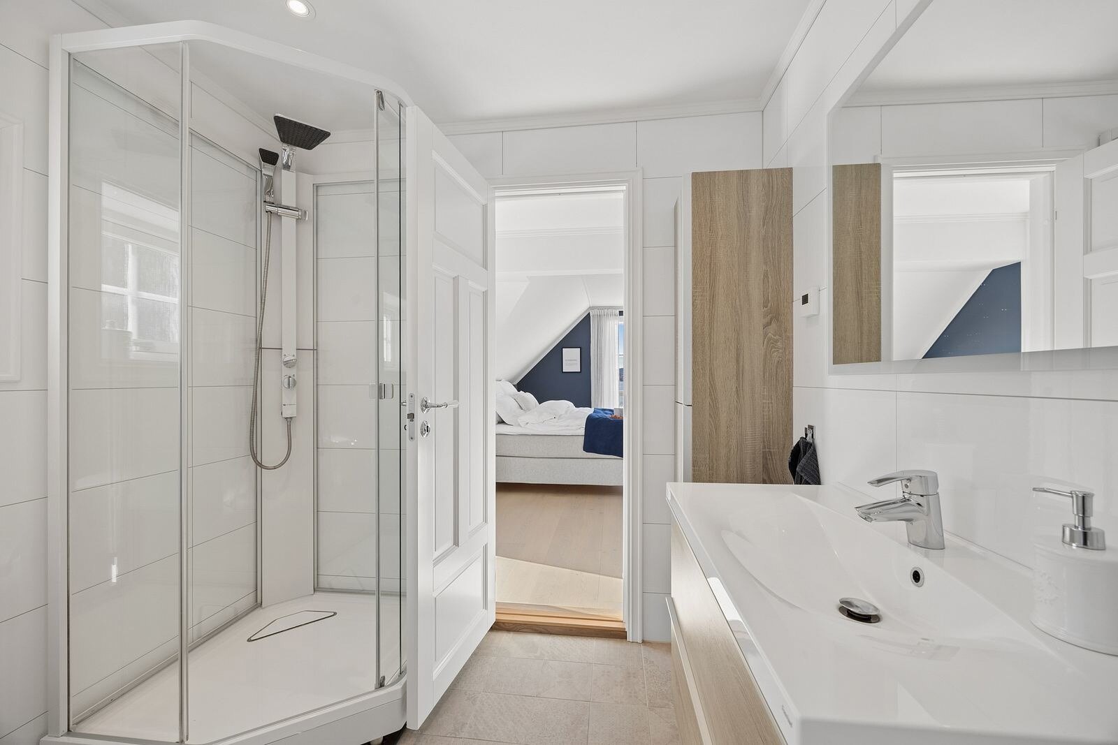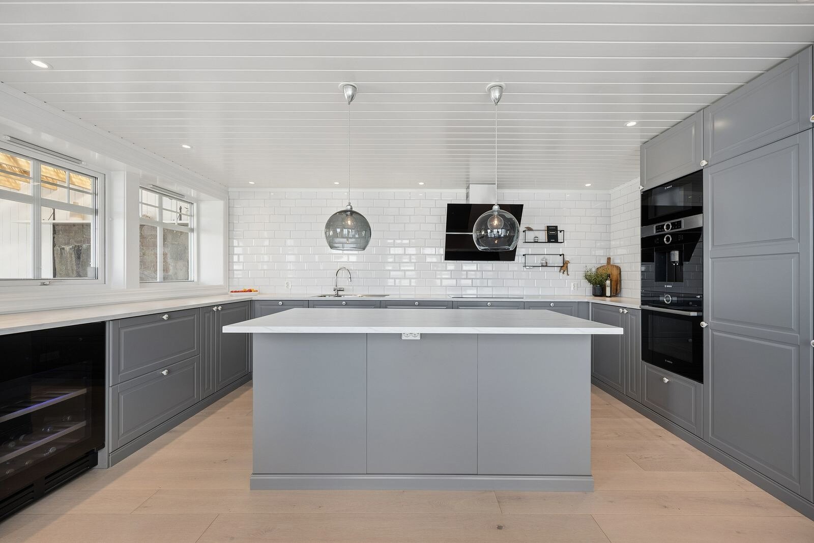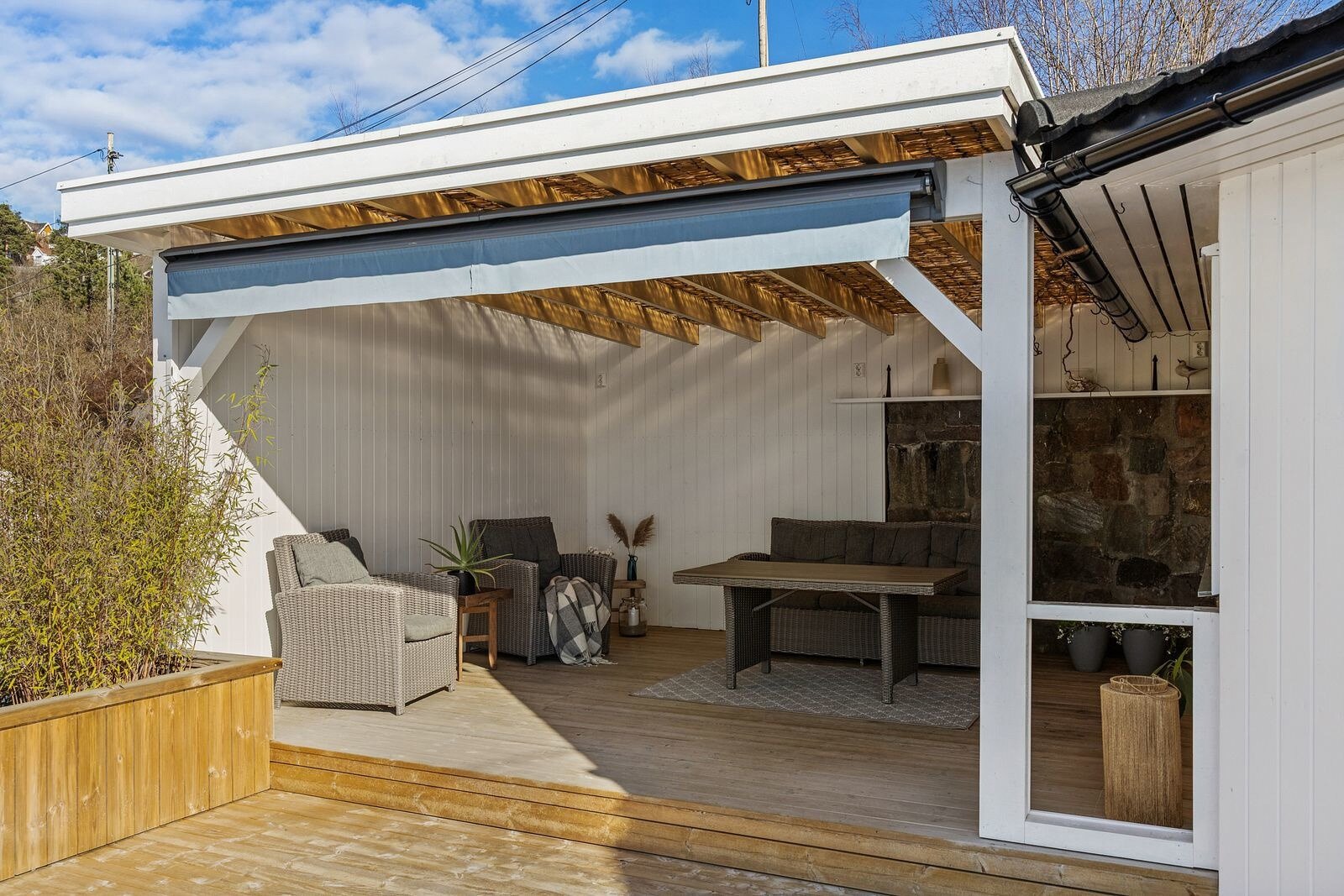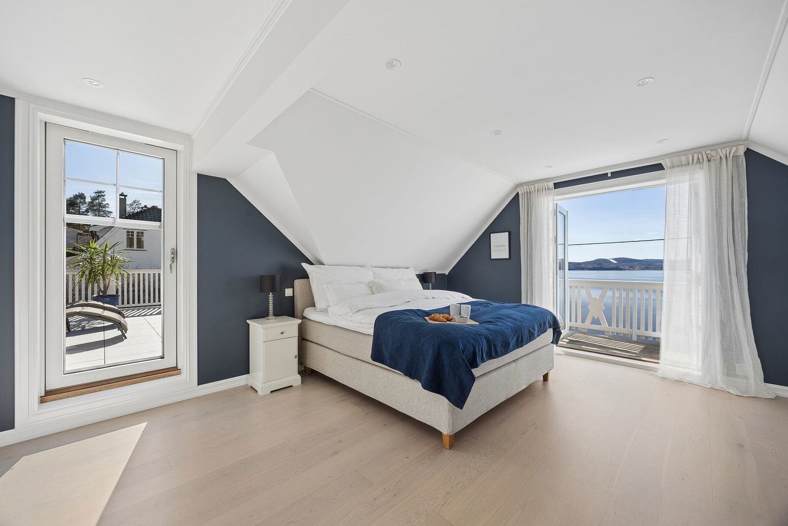 Eiendommen ligger høyt og fritt i terrenget med en fantastisk utsikt. Store terrasseflater, gode solforhold og gjennomtenkte løsninger inne og ute gir en bolig som kombinerer komfort, privatliv og livskvalitet. Her bor du så nær sjøen at du kan sovne til lyden av bølgeskvulp.