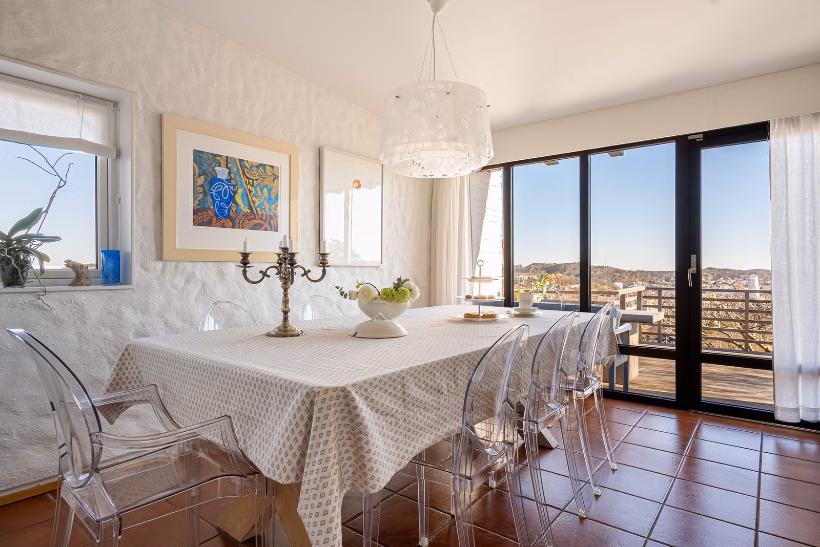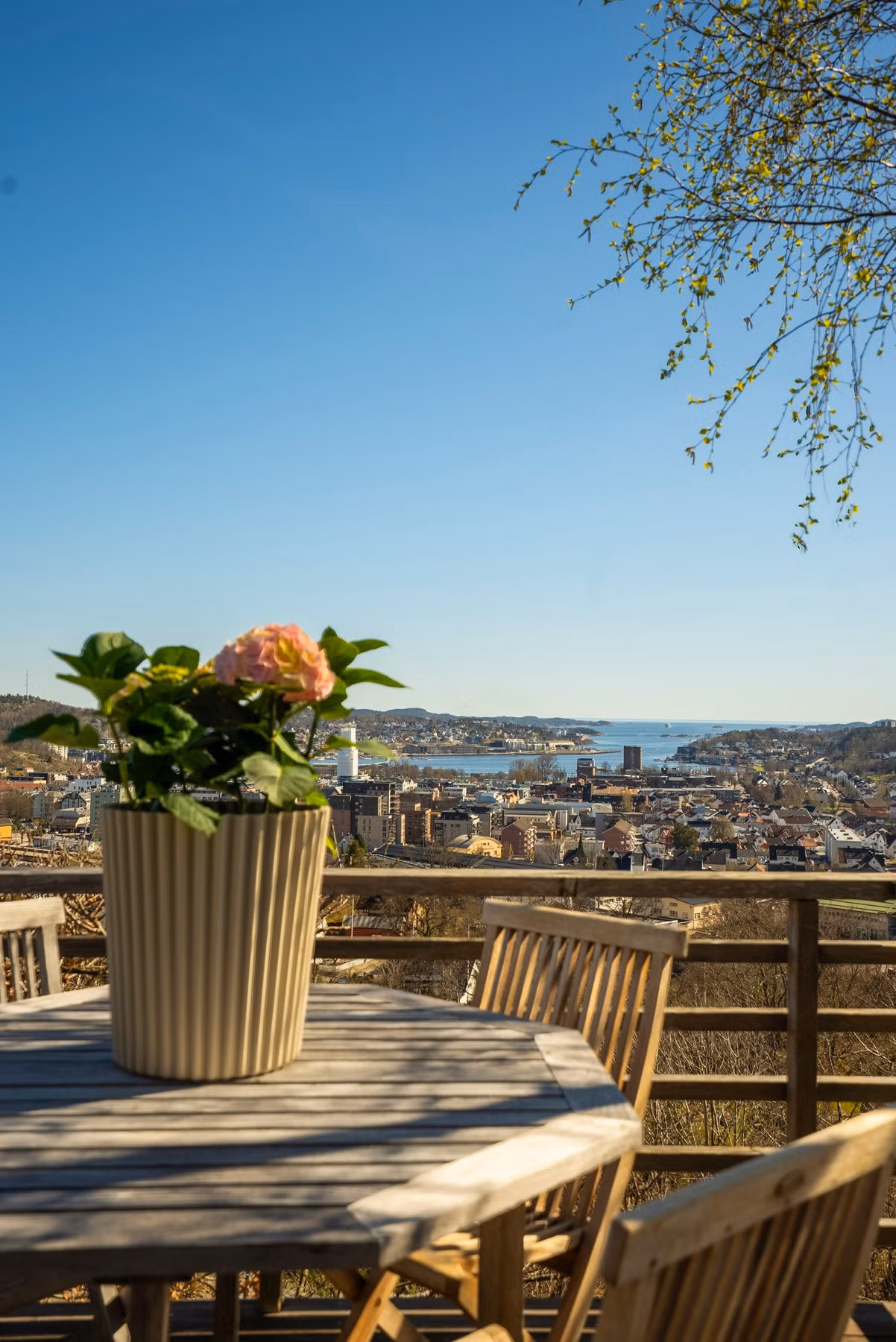 Mokollveien 8 er eiendommen for deg som ønsker en unik beliggenhet med nærhet til byen, praktfull utsikt over by og fjorden, samt en unik bebyggelse.
