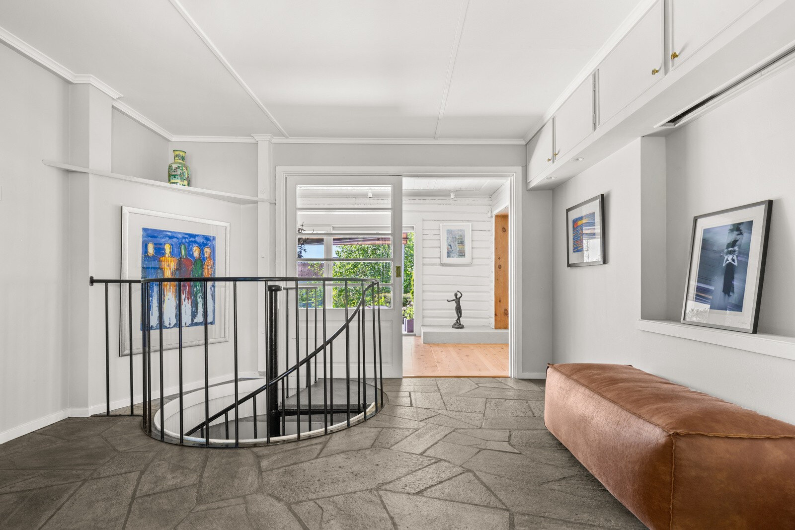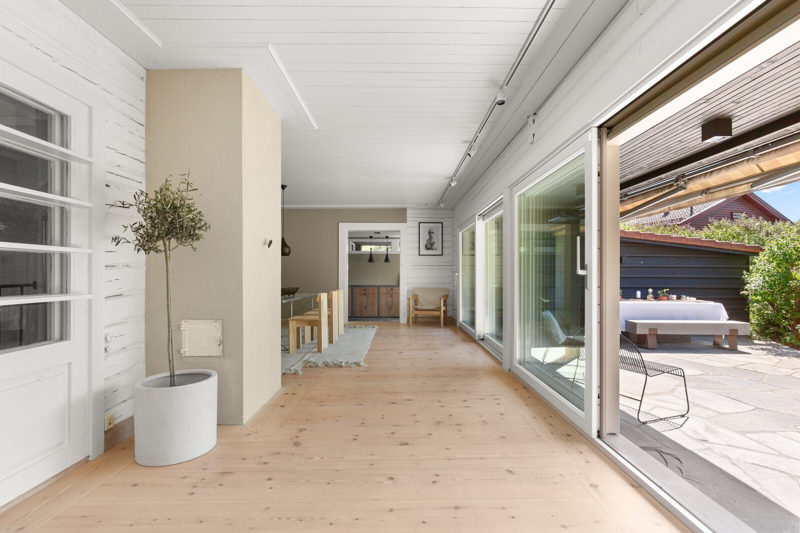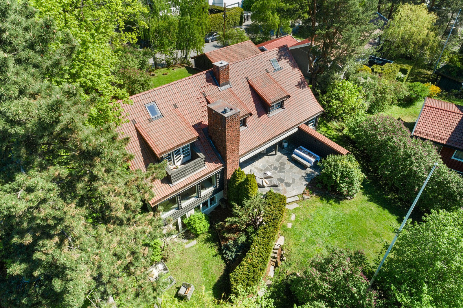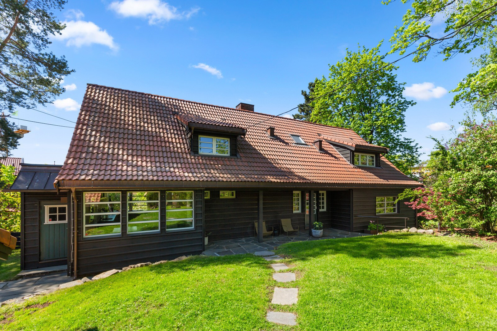 Skjermet villa med nydelig beliggenhet i fredfull oase i byen med umiddelbar nærhet til parker og byens fasiliteter. Huset er tegnet og tidligere bebodd av Jan H. Linge og bærer preg av en båtkonstruktørs sans for plassutnyttelse og kvalitet i materialvalg.