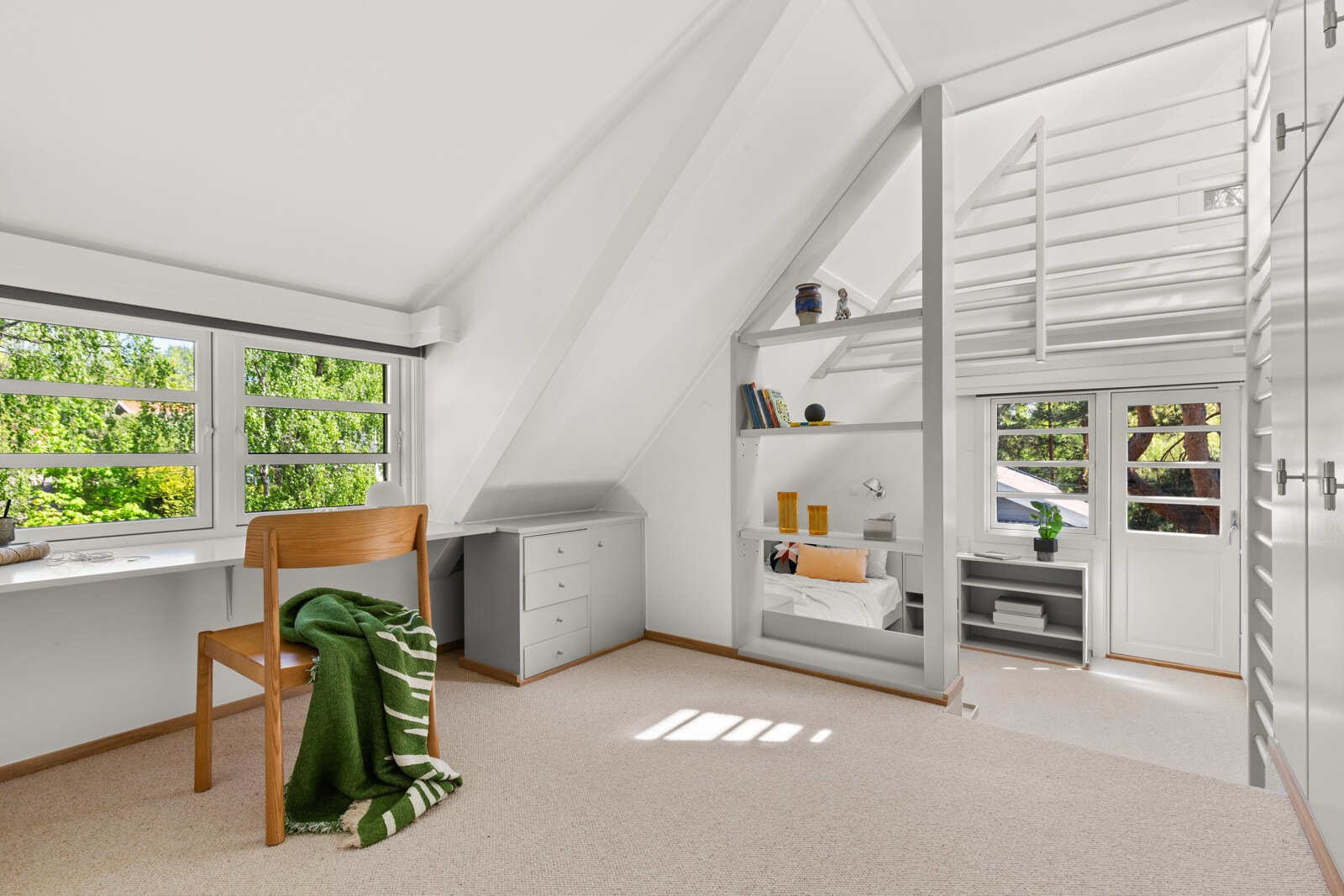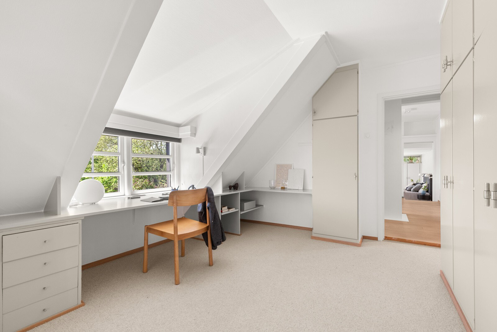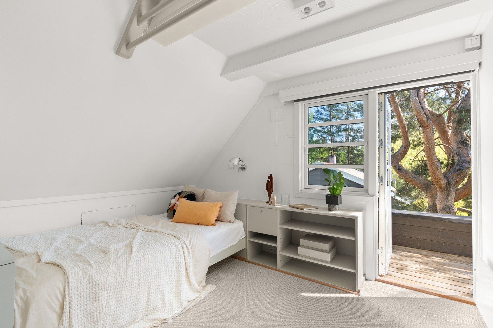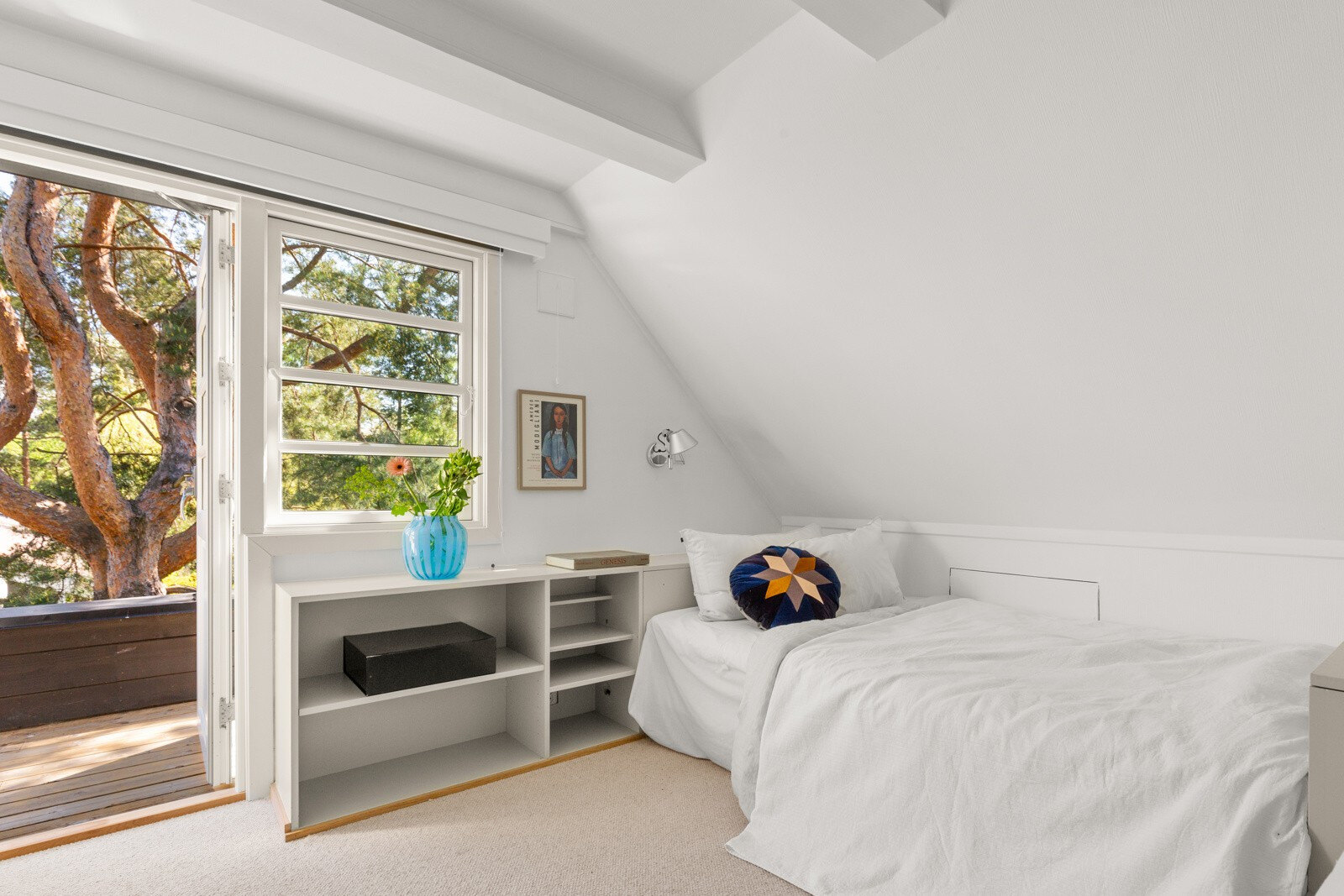 Skjermet villa med nydelig beliggenhet i fredfull oase i byen med umiddelbar nærhet til parker og byens fasiliteter. Huset er tegnet og tidligere bebodd av Jan H. Linge og bærer preg av en båtkonstruktørs sans for plassutnyttelse og kvalitet i materialvalg.